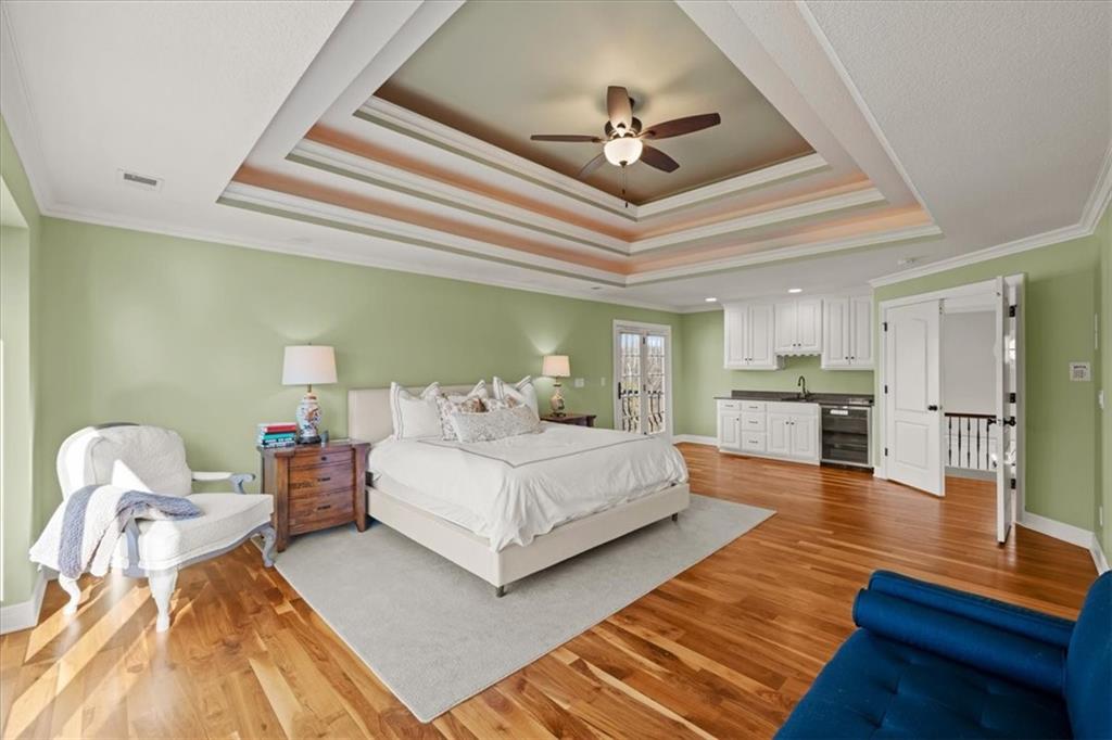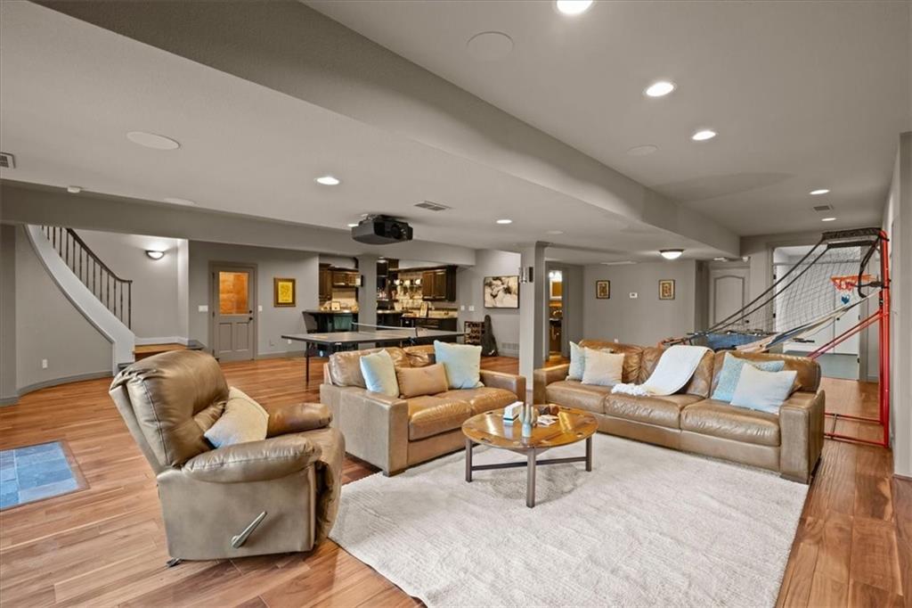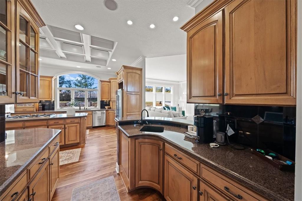 Beautiful design meets convenience and function in this architectural showpiece in the coveted Riss Lake community. With only three of these custom homes ever constructed, this Mark Bolling home will take your breath away. A hand painted mural, hidden children's nook, and 3 separate outdoor spaces, this home is truly special and not like anything you have seen at the lake. Earthy stone accent walls, beautiful wide plank walnut floors, multiple living and dining spaces and a grand kitchen make the main floor great for intimate evenings at home or perfect for entertaining. All bedrooms are spacious and privately appointed with their own en-suite baths. The owner’s suite is a true retreat, offering spa-caliber finishes including an oversized double walk-in shower and a secluded martini deck for quiet relaxation. The walkout lower level is designed to impress, featuring a full second kitchen, expansive recreation and entertainment area with a large projection screen, a dedicated workout room with sauna, and a rare suspended garage ideal for additional storage. Throughout the approximately 5,500 square feet, you’ll find custom built-ins, smart home technology by Applause Home Audio and Security, and numerous recent updates—including new carpet and new windows—enhancing both Room to spread out but a layout that still feels cozy is what makes this really feel like the perfect family home. Step outside and enjoy unparalleled access to the amenities that define Riss Lake living. Why maintain a pool when the neighborhood saltwater pool, tennis courts, and playground sit just beyond the back door, while the community’s 135-acre recreational and fishing lake is only two blocks away. Architecturally distinctive, and impeccably crafted, this home represents a rare chance to own something truly special.