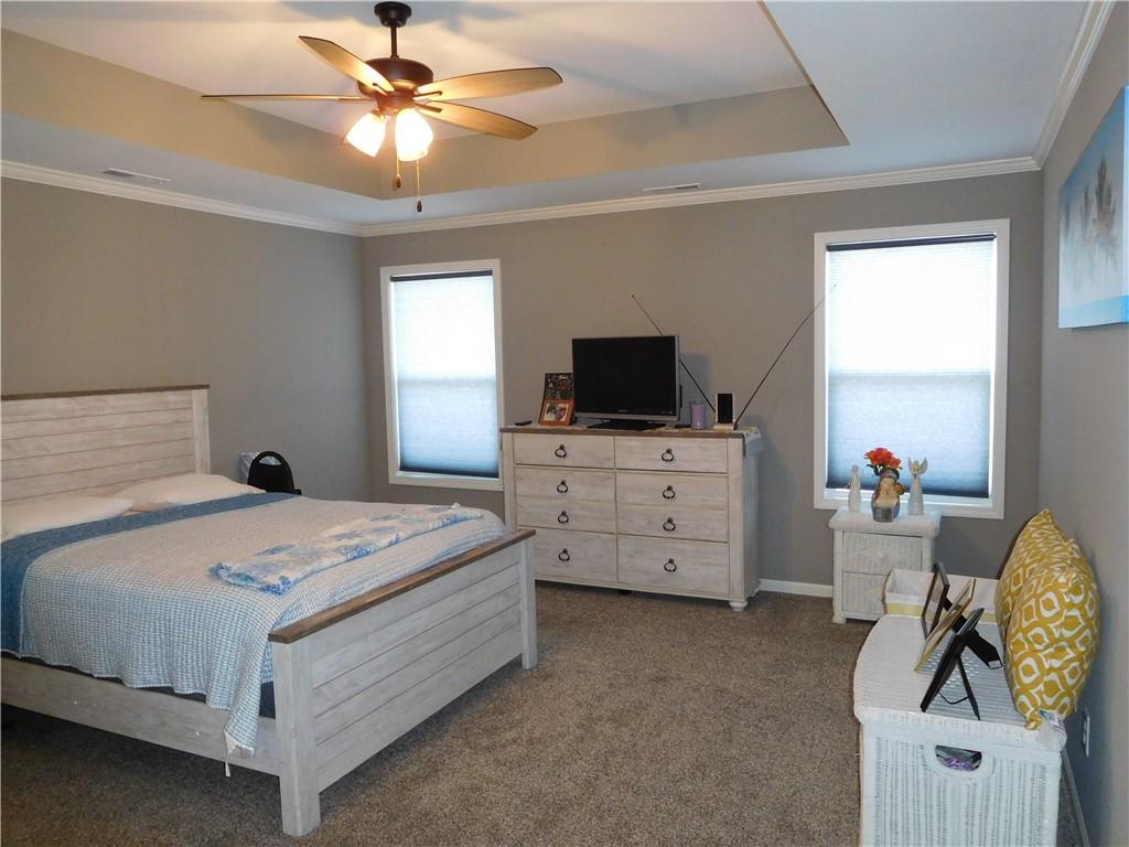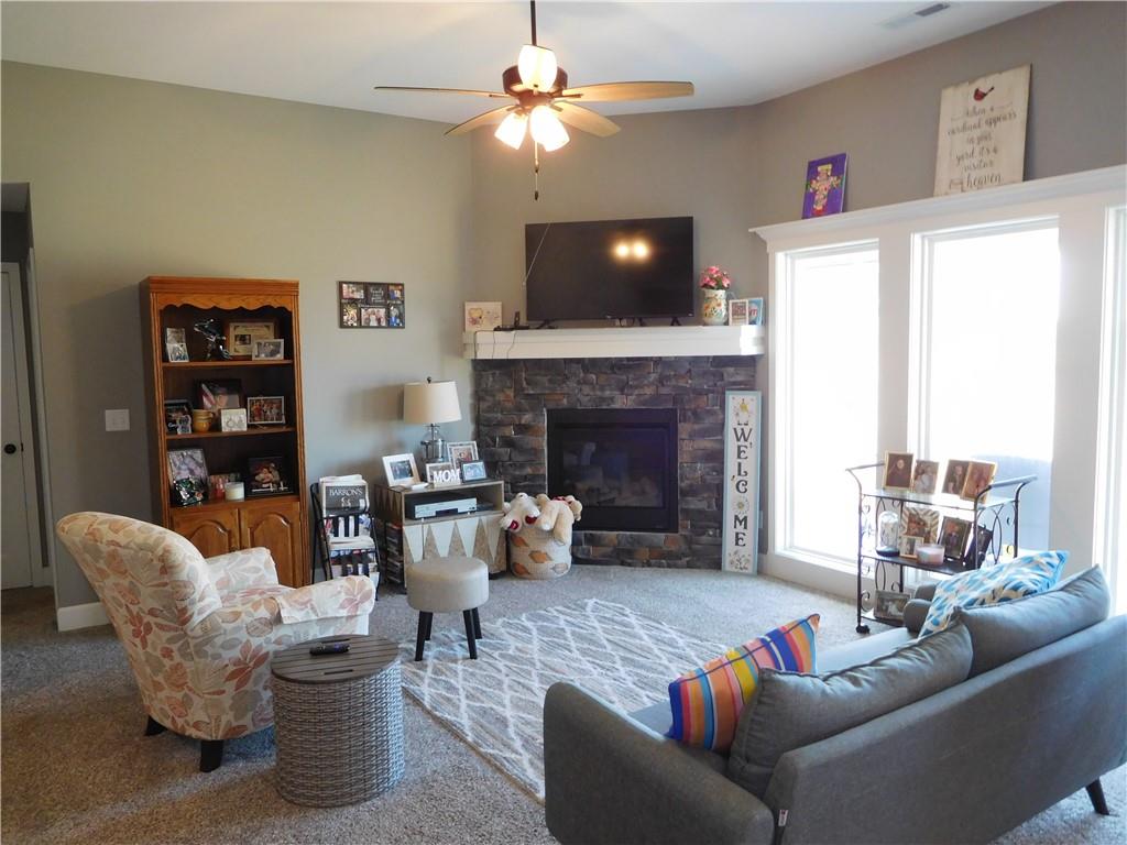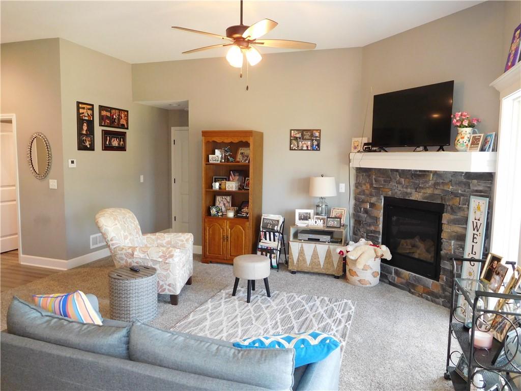 Beautiful home! Great location! Enjoy easy living with maintenance free vinyl siding with beautiful stone accent. No stairs, and extra wide door ways! Very open and inviting main floor. Kitchen offers gorgeous granite, Chefs dream island and oversized walk-in pantry with floor to ceiling shelves. custom cabinets, upgraded wood flooring and custom installed blinds. All 3bedrooms have walk in closets. Come enjoy the view that has you feeling like the country with nice green space behind and installed sprinkler system. Laundry is a true room to accommodate full size washer and dryer.