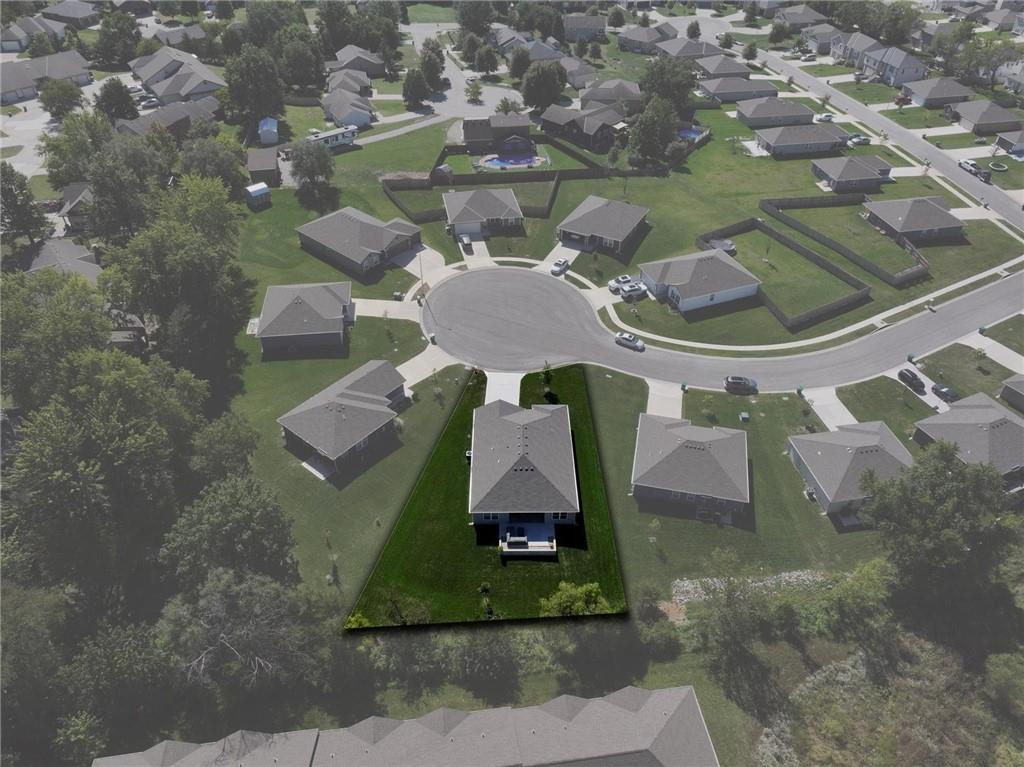 Enjoy comfortable one-level living in this inviting 3-bedroom, 2-bath ranch home located in a desirable area of Paola—just minutes from downtown, schools, and everyday conveniences. Built just two years ago, this lightly lived-in home features an open, airy floor plan filled with natural light. The kitchen is thoughtfully designed with a large island, ample counter space, and a walk-in pantry, making it ideal for both daily living and entertaining. The spacious owner’s suite offers a generous walk-in closet and a bathroom with room to add a future vanity or soaking tub. Outside, unwind on the covered back porch or expanded patio while enjoying tranquil views of the green space and the wildlife it attracts.
