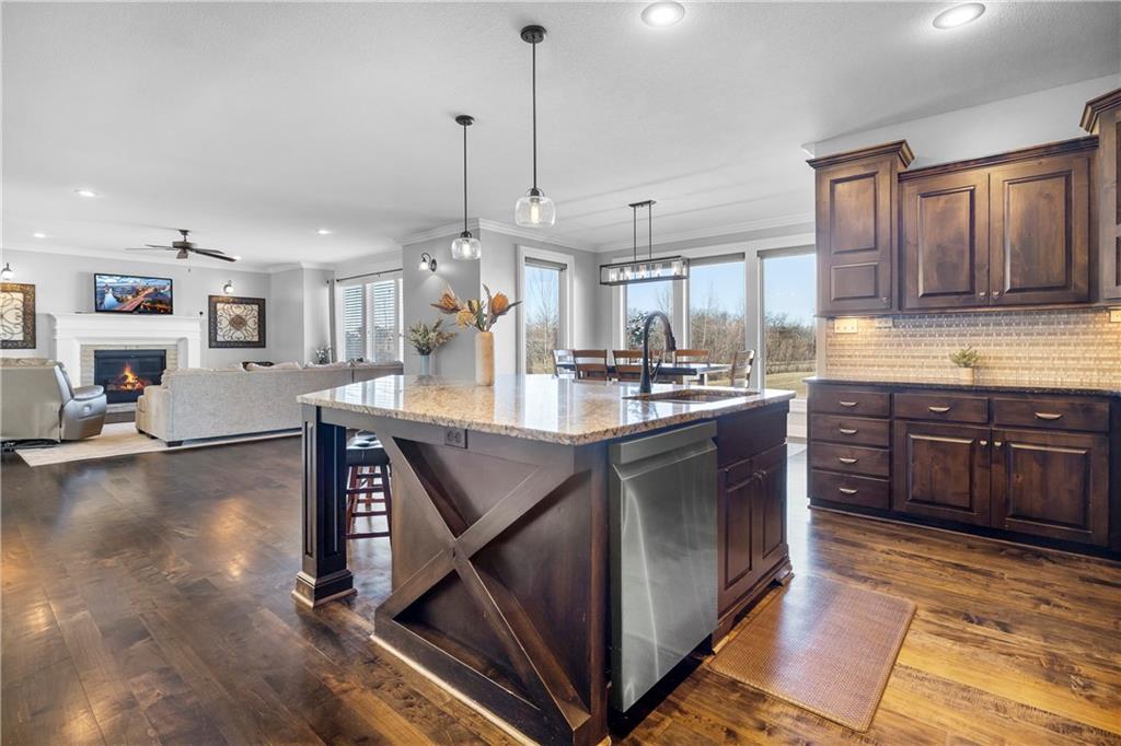 RARE BLUE VALLEY BEAUTY THAT BACKS TO GREENSPACE!!!! Come check out this beautiful two-story home offering over 4600 square feet, 5 bedrooms, 6.5 bathrooms and situated on a daylight lot backing to community GREENSPACE! The 'Hepton' floorplan was thoughtfully designed with expansive living and entertaining areas, a huge kitchen island plus a butler pantry. All bedrooms feature their own PRIVATE EN-SUITE BATHROOMS and the finished lower level includes a bar and sizeable rec room with potential to add a 6th bedroom if needed. Bonus features include hardwood maple floors, granite tops, multi zone irrigation and hardwired security system. Conveniently located near Blue Valley West High, Pleasant Ridge Middle and Cedar Hills Elementary.
