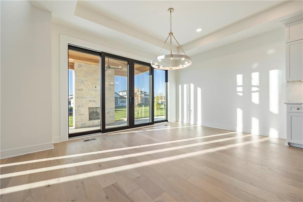 The "Woodland" Modern 1.5 Story by JFE Construction is here on a Daylight Lot backing to trees and trail! As you enter the foyer with a soaring ceiling you are greeted by an exquisite grand staircase open to the 2nd level. Stunning 2 story windows in the Great Room with ample natural light with views of the back yard to trees. Cozy up to the fireplace in the Great Room. Kitchen boasts a expansive island, chef's dream, walkin pantry and walkout your slider doors to your covered exterior living space with another fireplace! Primary En-Suite behind the Great Room with separate vanites, standalone spa tub, walkin closet & even more natural light. Behind the kitchen you'll find your additional bedroom on the main or office, full bath, full laundry room next to boot bench off the interior garage door. Up to the 2nd level you have 3 more bedrooms all with walk-in closets, 1 with Jack & Jill bath, 1 with it's own bathroom next to the Loft. All in the coveted Heritage Ranch, A Lambie-Rieke Community, with Amenities Galore such as state-of-the-art pool, clubhouse, trails, pickleball. play area, half-court basketball, Putting Green & ponds and so much more coming soon! This community provides a wonderful lifestyle and right next to the 1,238 Acre Heritage Park with Dog Park, Sports Parks, Golf, Lake, Trails and so much more! Contact Onsite Agents for Estimated Completion of homes on site, and design selections. Our Welcome Center Office will be open soon. We are available 7 days a week for showings of Models & Specs throughout the KC Metro. Renderings &/or images may show features and sq ft that are subject to change. Welcome Home to Heritage Ranch - one of the last NEW Home Communities in Johnson County! SPEC HOME is Under Construction with an Estimated Completion APRIL 2026 on LOT 33.