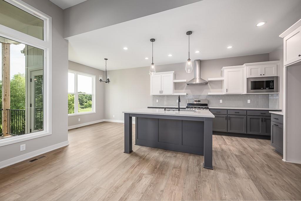 AWESOME Reverse 1.5 story home with 4 bedrooms, 3 baths, 3 car garage, and lots more. The Chieftain plan offers an open main floor with gorgeous entry, kitchen features island with granite counters and walk in pantry, luxury vinyl flooring in kitchen and dinning area and tile in baths/laundry. Walk-out basement is finished with a HUGE family room, 2 large bedrooms, a full bath and tons of storage in the bonus suspended garage area!! Room sizes and taxes are estimated. Pictures are similar to what home will look like finished.