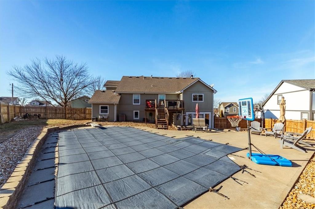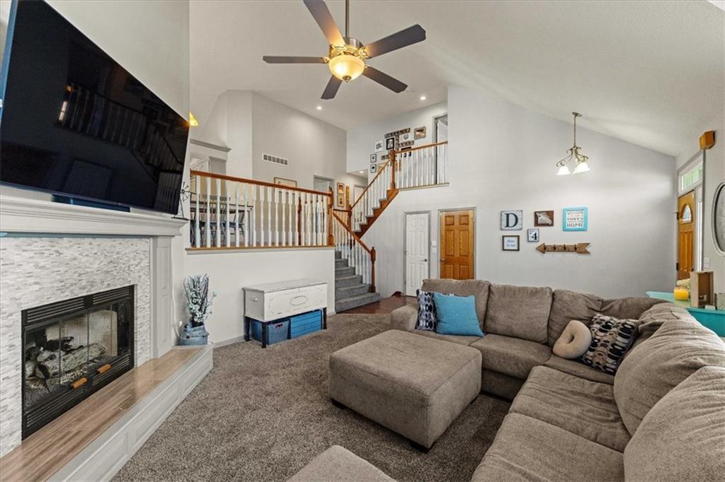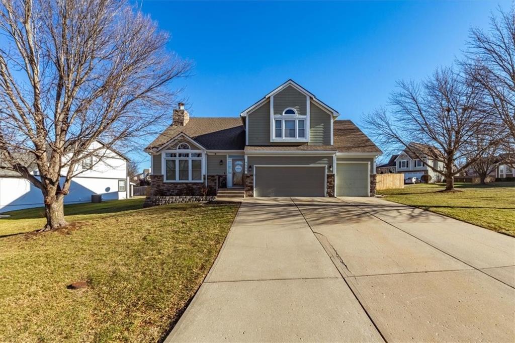 Stunning California Split situated on a prime corner lot in Lake Ridge Meadows in Lee’s Summit, within the highly sought-after Blue Springs School District. This home stands out with a three-car garage and a saltwater pool—a rare combination in this neighborhood. Inside, you’ll find a spacious kitchen and dining area with granite countertops and all stainless steel kitchen appliances included, opening seamlessly to a light-filled great room with vaulted ceilings and a cozy fireplace. The expansive primary suite is a true retreat, featuring his and hers walk-in closets and a private bath with a whirlpool tub and walk-in shower. Two additional bedrooms and a second full bath are also located on the main level. The finished walk-out basement provides additional living space with a family room featuring a second fireplace, a fourth bedroom, and a stunning third full bath—ideal for guests or a home office. An additional sub-basement offers valuable storage space for seasonal items and extras. Step outside to an incredible backyard oasis featuring a saltwater pool with a new liner (hot tub negotiable), privacy fence, deck, patio, decorative rock landscaping, and an inground concrete basketball area. A bonus attached storage garage houses pool equipment and lawn mowers, adding exceptional functionality beyond the three-car garage. Offering space, style, resort-like outdoor living, and an unbeatable location—this Lake Ridge Meadows gem is a must-see!