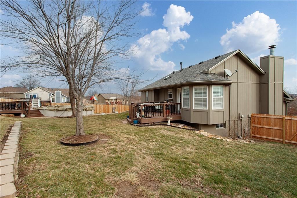 Don't miss this move-in ready home in the sought after Grain Valley School District. This one owner home is ready for its next family. The updated kitchen features granite counter tops, stainless appliances, and wood floors. The kitchen overlooks the living room with a wood burning fireplace. New plantation shutters add to the character of this cozy space. Plenty of rooms including 3 bedrooms on the main floor, an office/workout space on the garage level, and a non-conforming bedroom with a half bath in the basement. This home sits on just over a half-acre on a cul-de-sac. The back yard is fully fenced. 3 sides are privacy. The back of the yard is wooded with grown trees providing natural privacy in the spring, summer, and fall. And don't miss out on having your own pool! The above ground pool has its own deck ready for get togethers!