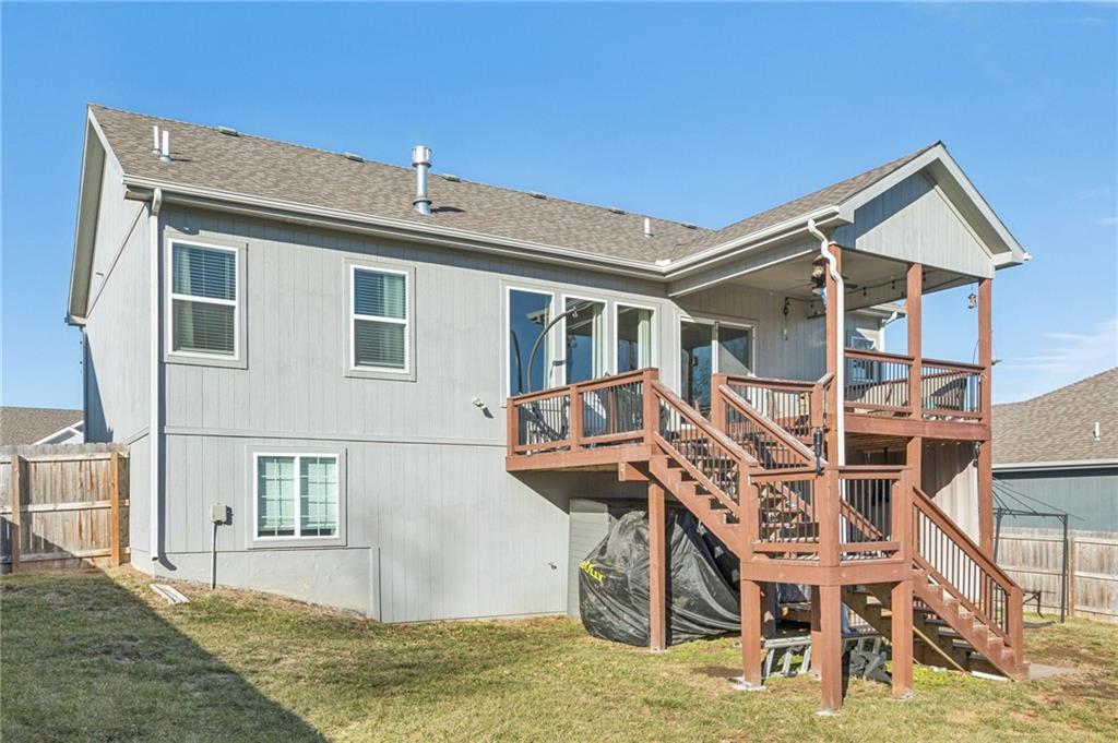 Beautifully maintained, only 6-year-old split-entry home in Liberty! This 3-bedroom, 3-full-bath property offers an open and inviting layout with wood flooring throughout the kitchen and dining area, complemented by granite countertops. Each bathroom features tile flooring and tile shower surrounds for a clean, modern feel. Enjoy outdoor living in the large backyard with a covered deck and patio—perfect for entertaining or relaxing. Conveniently located with easy access to local amenities, this home combines modern finishes with comfortable living.