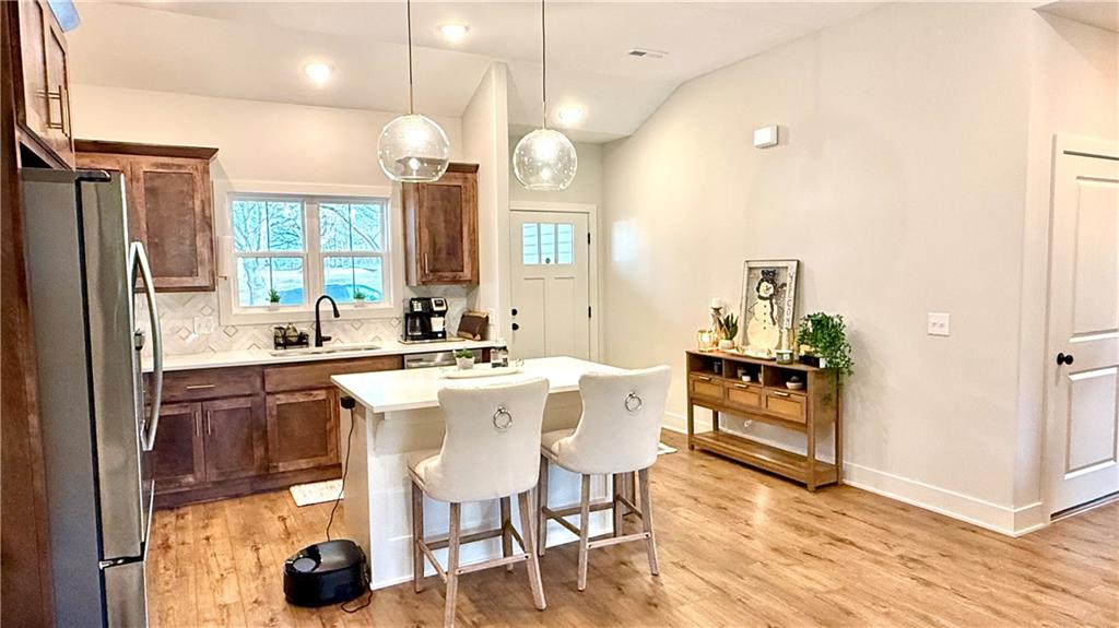 Welcome to this stunning 2-bedroom, 2-bathroom townhome in the sought-after Greens of Ashland community. Built less than a year ago, this home feels practically brand new and offers a perfect blend of comfort and modern style. Step inside to a bright, open floor plan featuring a custom tile kitchen with beautiful finishes and ample storage ideal for both everyday living and entertaining. The cozy fireplace and built-in bookshelf create a warm, inviting living space. Enjoy your mornings on the front porch watching the sunrise, and unwind in the evenings on the covered back patio, perfect for relaxing or hosting friends. With lawn care and snow removal included, you’ll have more time to enjoy everything this low-maintenance lifestyle has to offer. Don’t miss your chance to own this charming, move-in-ready home in a peaceful, convenient location!