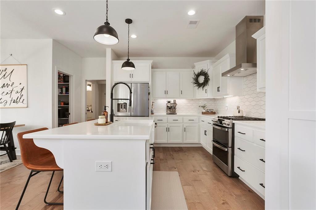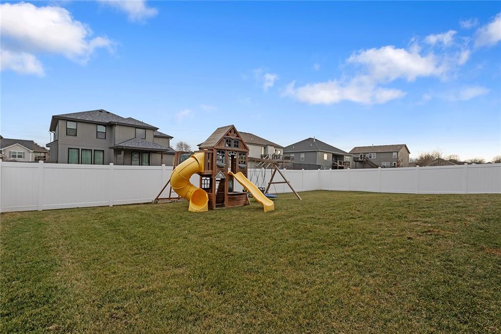 This Modern Farmhouse Was Built to Be Lived In—Not Just Looked At. This three-year-old modern farmhouse proves that great design should work as beautifully as it looks. From the moment you step inside, the open floor plan and abundant natural light do what good architecture always does: they make you feel at home. The kitchen is the command center—generous prep space, two pantries, and a layout that supports real cooking, real entertaining, and real life. Nearby, a thoughtfully designed drop zone keeps daily chaos organized without effort. Upstairs, the primary suite offers the kind of privacy and comfort most people don’t realize they want until they have it: an oversized walk-in closet, a deep soaker tub, and a spacious walk-in shower designed for unhurried mornings. Three additional large bedrooms provide flexibility for family, guests, or work-from-home needs, while the upstairs laundry is exactly where it should be—close, convenient, and practical. The lower level extends the home’s usefulness with a fifth bedroom suite or private office and a custom media room that turns ordinary evenings into something worth staying in for. Outside, the home continues to deliver: a covered deck for year-round enjoyment, irrigation system, play gym, and a new PVC privacy fence that offers both security and peace of mind. This is not a house designed to impress for five minutes. It’s a home designed to satisfy for years.