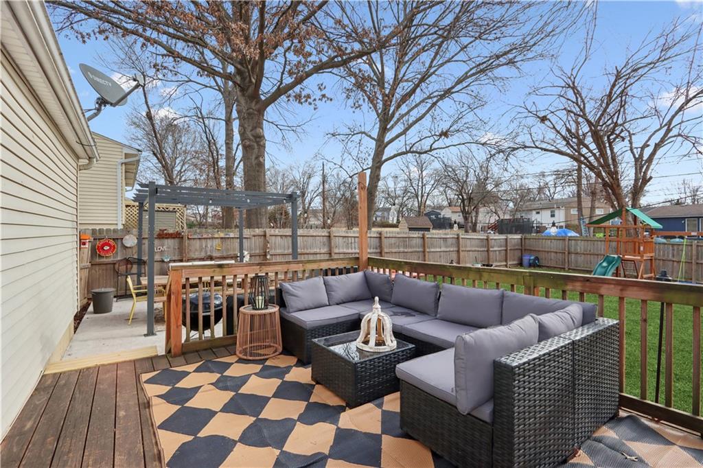 Wow- step into this bright and open floor plan remodeled for easy every day living and entertaining! Everyone hangs out in the kitchen- so enjoy the stunning remodel with huge island with storage and seating for 5! Charming banquette seating adds even more space for casual dining, or can double as a cozy TV nook or formal seating area Upstairs offers 3 nicely sized bedrooms with remodeled bath and large linen closet. Lower level boasts a very large living room with space for everyone and a new bathroom! Fantastic yard with so much outdoor living space! Newer privacy fence, large deck and patio- just waiting for spring!