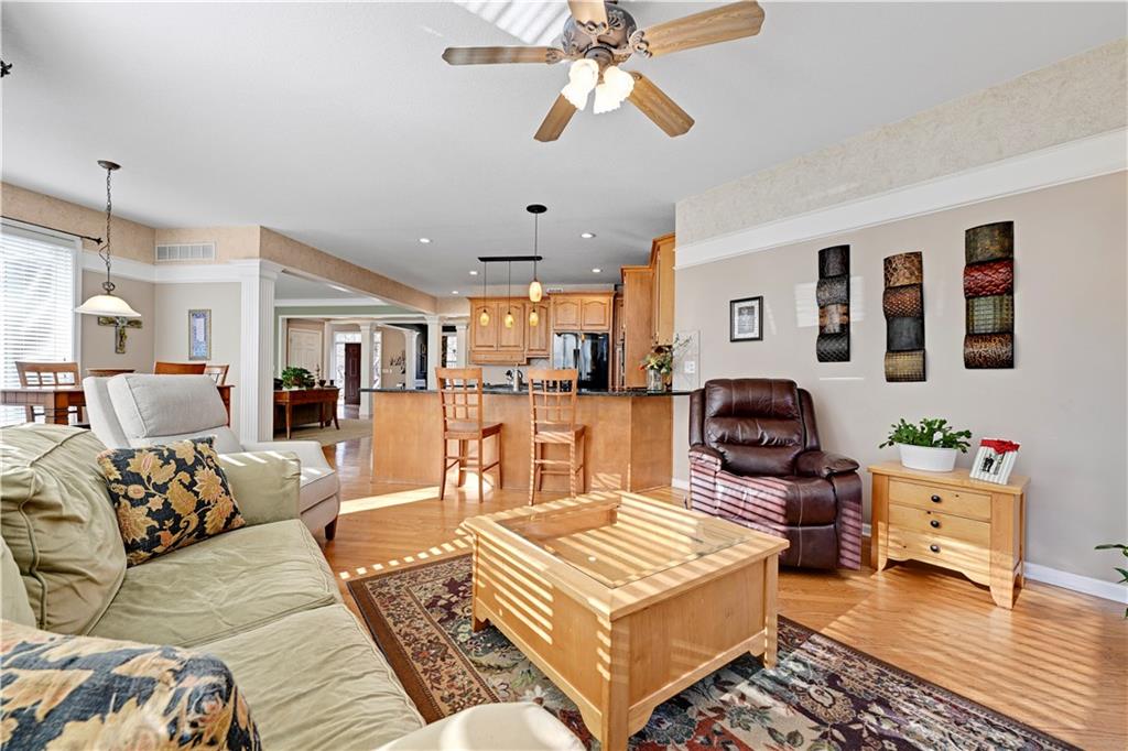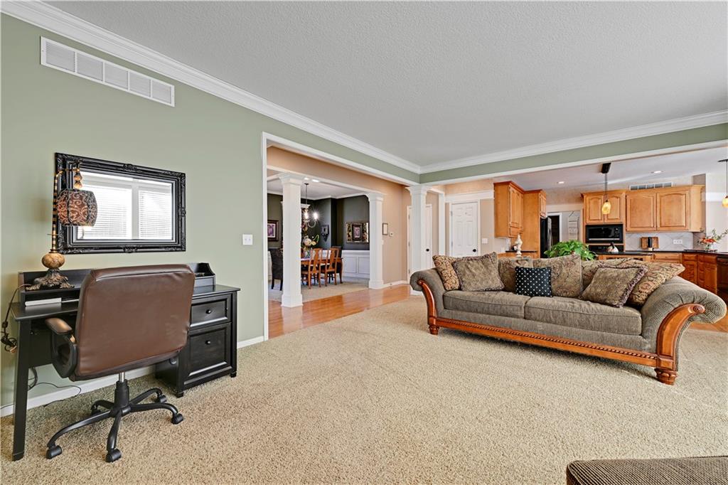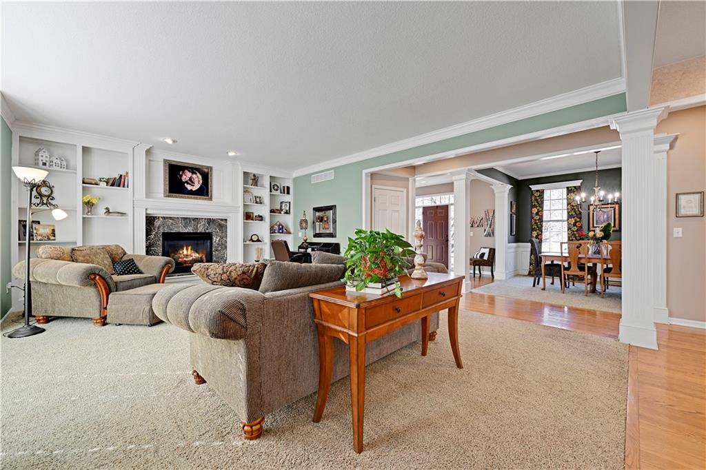 Spectacular two-story home in the coveted Park Hill School District, perfectly situated on a secluded, wooded lot offering privacy and tranquility. This 4-bedroom, 3.1-bath residence features an open-concept layout ideal for both everyday living and entertaining. The spacious great room flows seamlessly into the hearth room, while formal dining and a sunny breakfast nook provide flexible gathering spaces. The large kitchen is a chef’s dream with a center island, granite countertops, abundant cabinetry, and ample workspace. Upstairs, retreat to the impressive primary suite overlooking the private, wooded backyard. This luxurious sanctuary includes a sitting room, fireplace, built-ins, vaulted ceiling, and a spa-like bath with dual vanities, soaking tub, walk-in shower, and generous his-and-hers walk-in closets. A convenient laundry chute leads directly to the laundry room. The daylight lower level offers a comfortable family room with plenty of natural light, perfect for relaxing or entertaining. Enjoy peaceful surroundings with unbeatable access to the highway system and airport—this home truly combines privacy, space, and convenience.