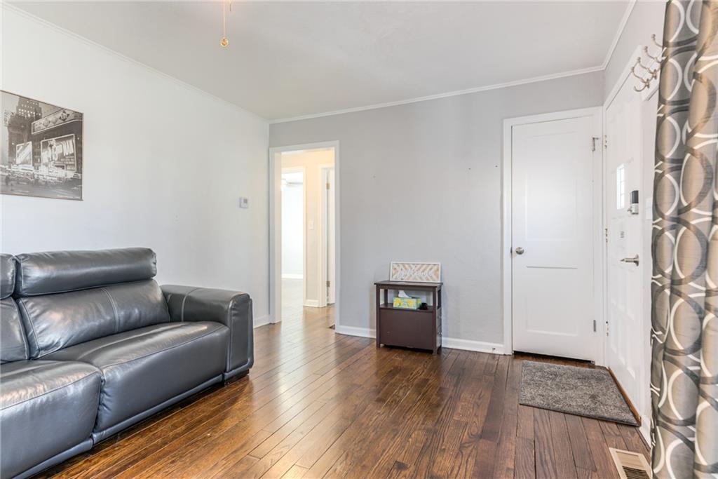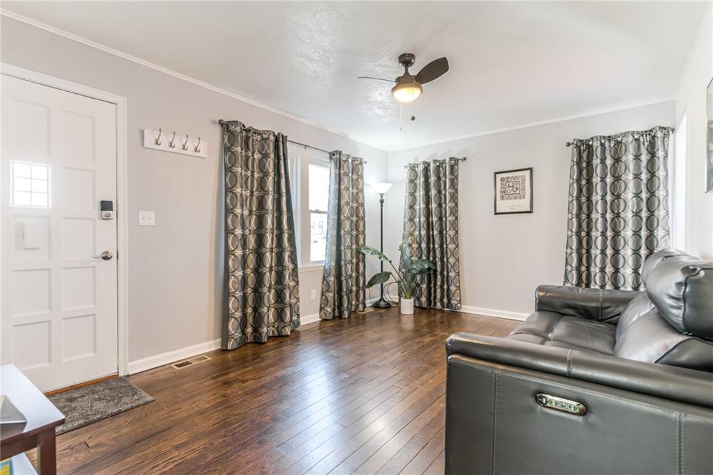 Charming Brick Home with Main-Level Living & Expansion Potential. This adorable two-bedroom brick home is full of character and has been meticulously maintained and thoughtfully updated throughout. The main-level living area offers warm wood floors that extend through the living spaces and bedrooms, creating a cozy and inviting atmosphere. The home features newer vinyl windows, along with a newer roof and gutters, providing peace of mind for years to come. The main bathroom is finished with tile flooring and a large porcelain tub. The updated kitchen boasts granite countertops and a convenient eat-in area, perfect for everyday meals or entertaining. An unfinished attic offers excellent potential for future expansion and additional living space. The basement includes a finished office or recreation room, a dedicated laundry area, and access to a full-car garage, & newer driveway Outside, large deck overlooks the huge backyard provides endless possibilities—ideal for a beautiful garden, outdoor entertaining, or the addition of a detached storage or garage space. This charming home is move-in ready with room to grow and is a must see!