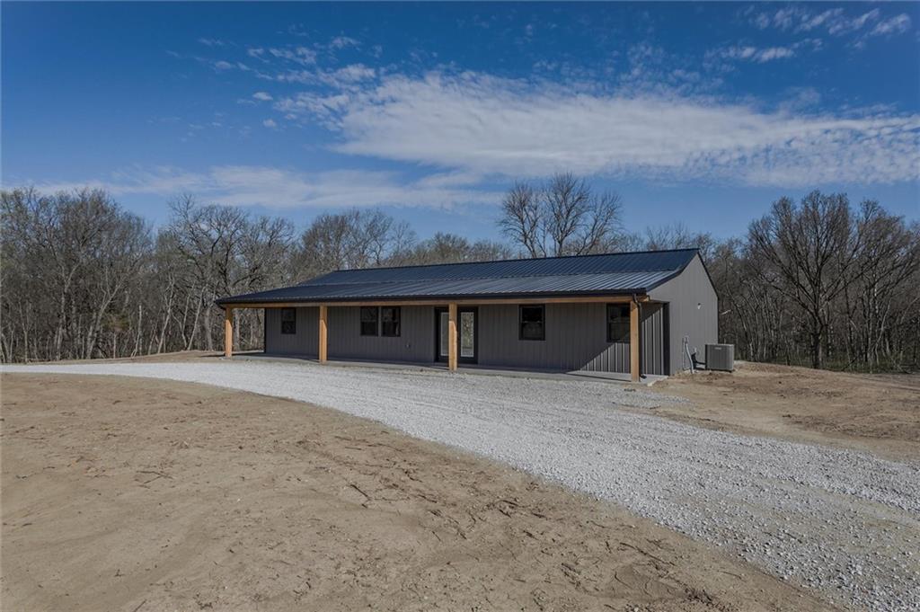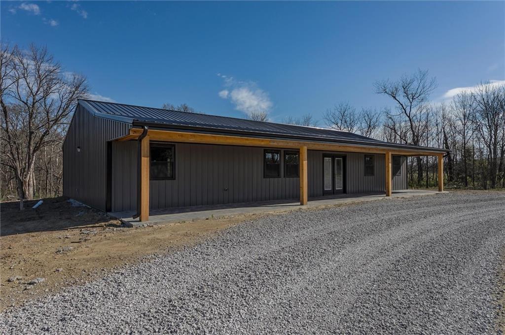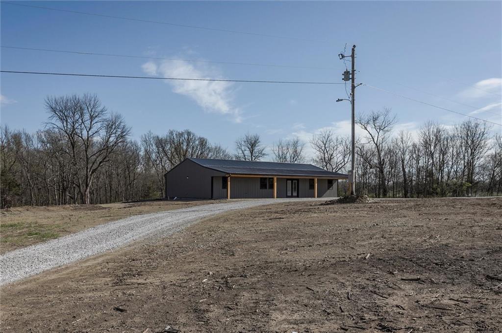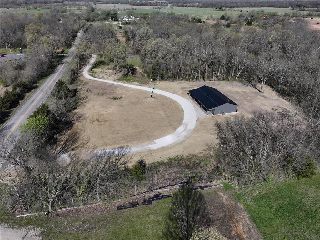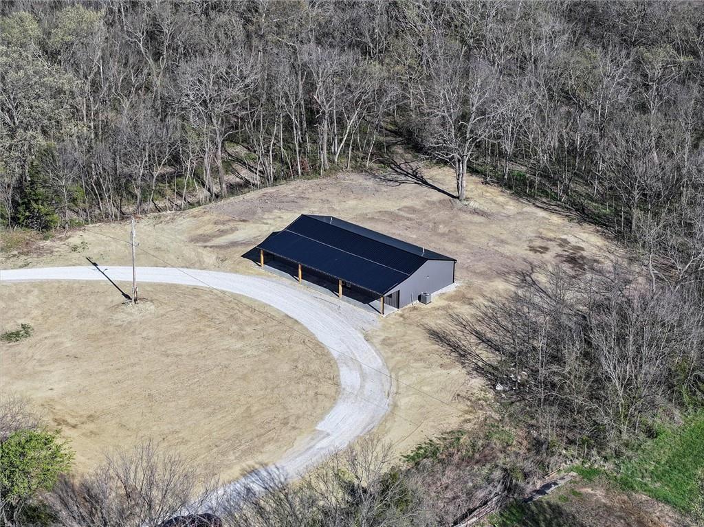 8 +/- wooded acres with a Charming custom-built 4-bed, 2-bath home on a dual—entry circular driveway. A thoughtful floor plan with a bright, open living space that flows from the covered front porch, stretching the full length of the house. While entertaining from the back of the home, you will overlook a creek with mature trees. The timber has been cleared for a park-like setting where wildlife is right out your back door. The kitchen offers an island, pantry, and locally crafted custom cabinets; the laundry room includes additional custom built-ins. Your family & friends will be entertained by a 100" flat-screen TV for everyone's enjoyment. The spacious primary suite is designed for comfort and organization. The sleeping area is adjacent to a generous walk-in closet with built-in shelving, multiple hanging rods at varied heights for dresses, shirts, and long coats, designated cubbies for shoes and accessories—plus a separate linen closet for extra bedding and towels. The en-suite bathroom features a luxurious double shower with two showerheads and independent temperature/flow controls. Finishes include recessed shelving for toiletries. Recessed LED lighting creates a bright, calm atmosphere. The suite also includes a vanity with ample counter space and soft-close drawers for added convenience. This home is all electric; the walls have spray foam insulation, along with the blown insulation in the attic, which will make for an energy-efficient home. The circular drive with 2 entrences make it convenient for larger trucks, trailers & all the extras. An optional shed is available at an additional cost. Additional acreage is available. Modern, welcoming color palette and tasteful finishes throughout. All of this right on blacktop.