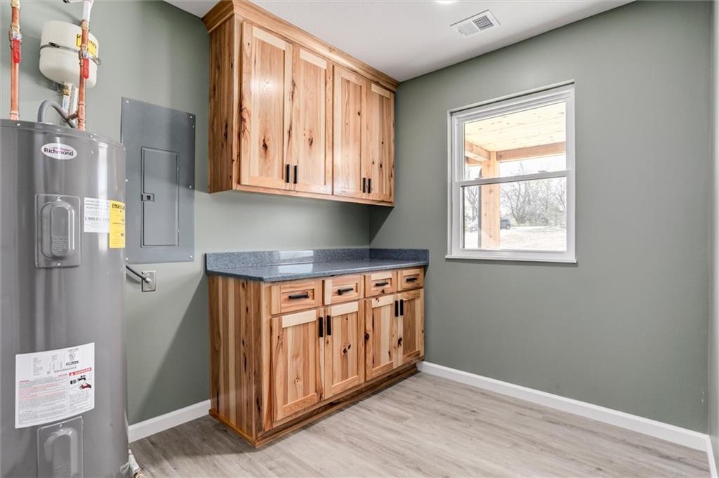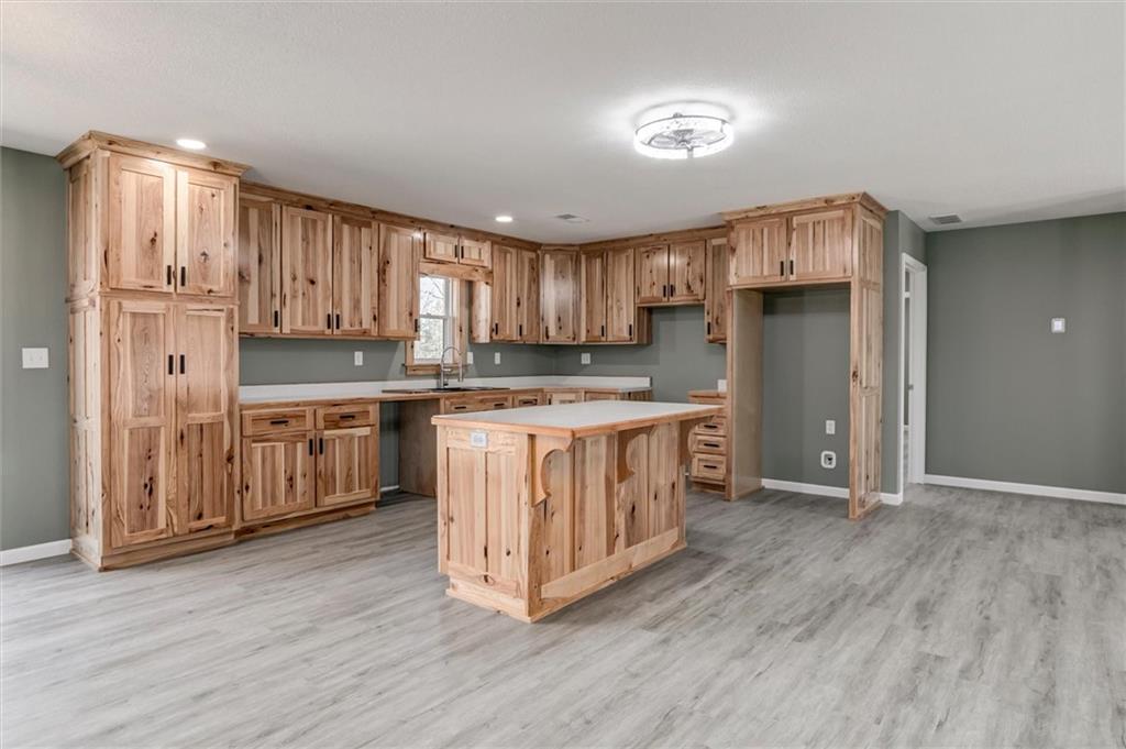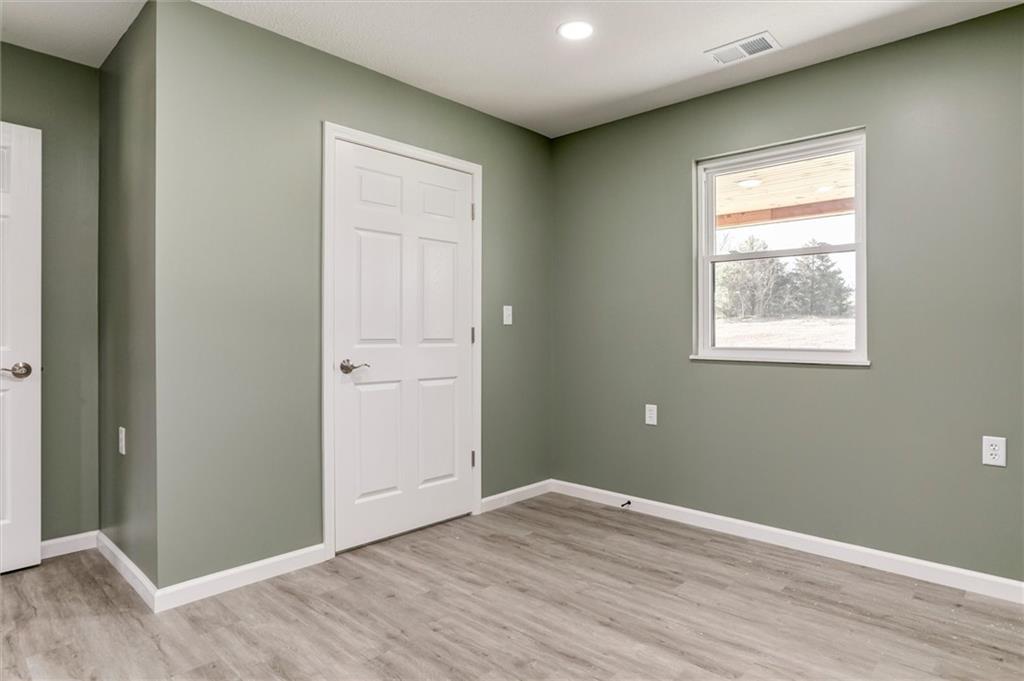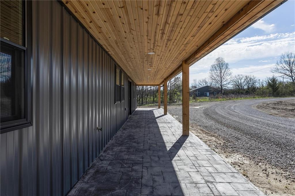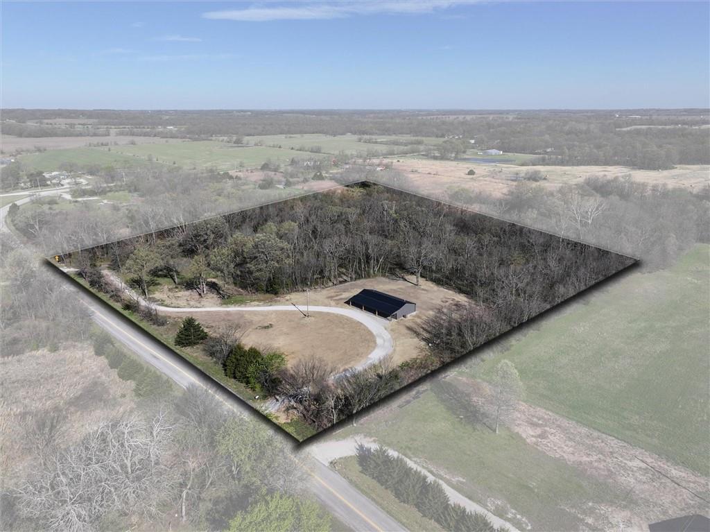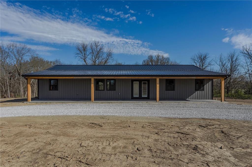8 +/- wooded acres with a Charming custom-built 4-bed, 2-bath home on a dual—entry circular driveway. A thoughtful floor plan with a bright, open living space that flows from the covered front porch, stretching the full length of the house. While entertaining from the back of the home, you will overlook a creek with mature trees. The timber has been cleared for a park-like setting where wildlife is right out your back door. The kitchen offers an island, pantry, and locally crafted custom cabinets; the laundry room includes additional custom built-ins. Your family & friends will be entertained by a 100" flat-screen TV for everyone's enjoyment. The spacious primary suite is designed for comfort and organization. The sleeping area is adjacent to a generous walk-in closet with built-in shelving, multiple hanging rods at varied heights for dresses, shirts, and long coats, designated cubbies for shoes and accessories—plus a separate linen closet for extra bedding and towels. The en-suite bathroom features a luxurious double shower with two showerheads and independent temperature/flow controls. Finishes include recessed shelving for toiletries. Recessed LED lighting creates a bright, calm atmosphere. The suite also includes a vanity with ample counter space and soft-close drawers for added convenience. This home is all electric; the walls have spray foam insulation, along with the blown insulation in the attic, which will make for an energy-efficient home. The circular drive with 2 entrences make it convenient for larger trucks, trailers & all the extras. An optional shed is available at an additional cost. Additional acreage is available. Modern, welcoming color palette and tasteful finishes throughout. All of this right on blacktop.