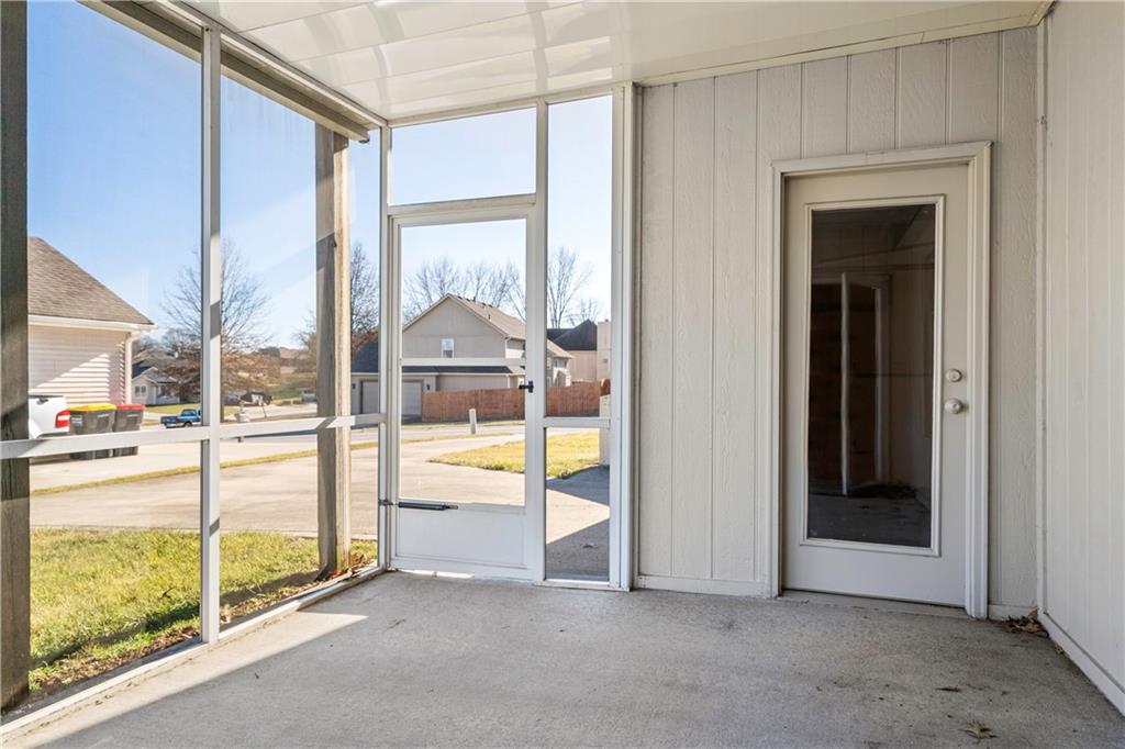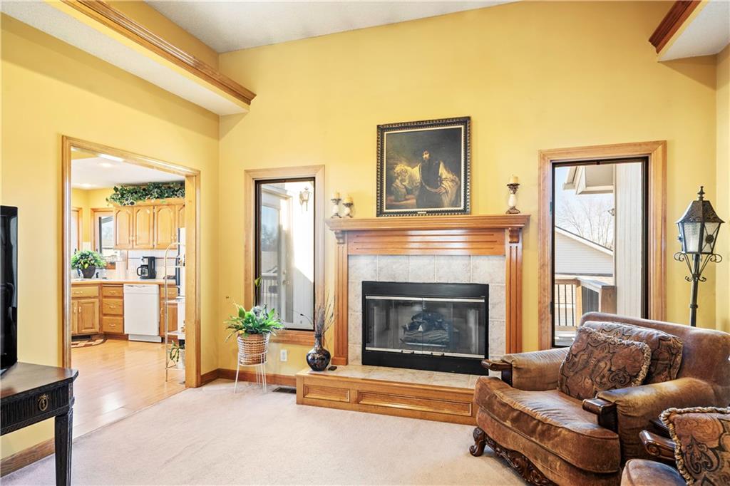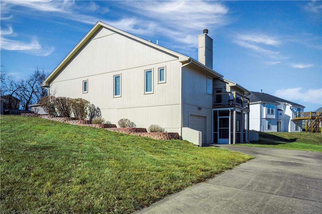 This well-maintained 4-bedroom, 3-bath ranch home is situated on a corner lot in the Marimack subdivision of Kearney Missouri and offers a thoughtfully designed layout with a finished walk-out lower level. Built in 2000, the home has been kept in impeccable condition. The main level features an inviting atrium entry, a spacious living room, and a primary bedroom with an en-suite bathroom. Hardwood floors run throughout the kitchen, with tile bathrooms, and carpeted living areas and bedrooms. There are two additional bedrooms on the main level, with access to a second full bathroom. The kitchen includes an eat-in breakfast area and is conveniently located near the main-level laundry room. Outdoor living spaces on this level include a front porch and a deck overlooking the property. The finished lower level expands the living space to a total of 2,357 sq ft, with an additional bedroom, bathroom, a den, dining area, and a second kitchen. Two storage rooms and a utility room with additional laundry hookups and ventilation provide flexibility for a variety of uses. The lower level also offers grade level exterior access to a screened-in patio. Parking and storage options include a two-car garage on the main level with interior access, as well as a second driveway leading to an additional garage on the lower level, also accessible from inside the home. This property offers multiple indoor and outdoor spaces, flexible living areas, and convenient access between levels, located minutes from local shops, restaurants, and the Marimack Golf Course.