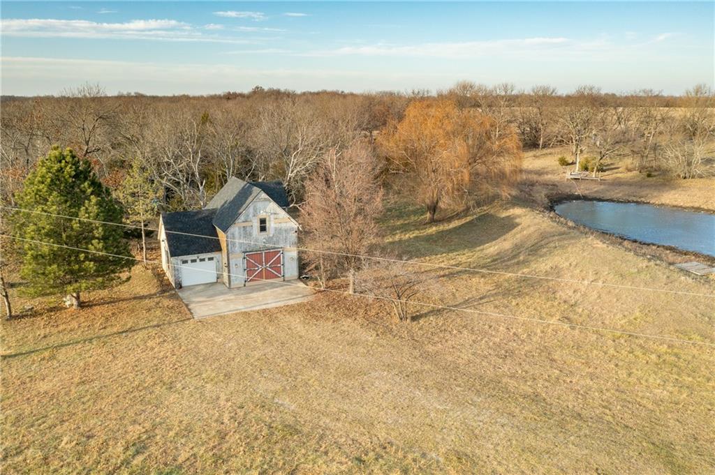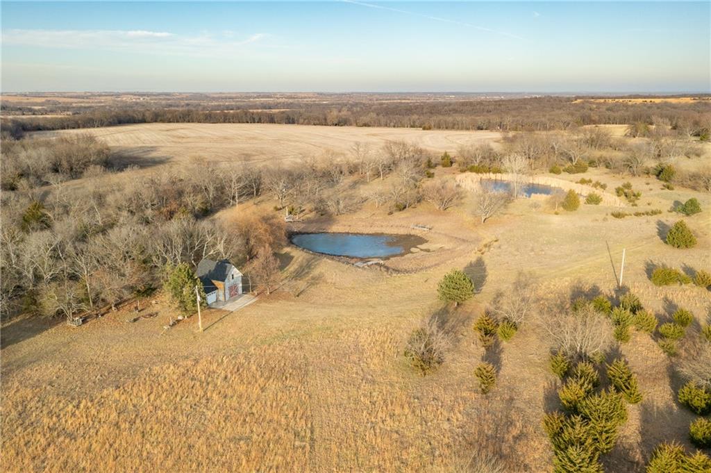 Located just south of Pomona, KS in Franklin County, this 40± acre tract offers rolling pasture, quality wildlife habitat, and a well-maintained carriage house. The property has been grazed in recent years and features two primary ponds that could be combined into a larger pond with minimal work, plus an additional wet-weather cattle pond on the south end. Timber is well positioned with a 3–4 acre block in the northwest corner behind the carriage house, complete with a draw leading into the pond system. This area has produced trail-camera photos of mature whitetail bucks and turkeys. A second 5+ acre block of mixed hardwoods and cedars sits on the southern portion of the farm and offers excellent bedding, roosting, and habitat potential. Scattered cedars throughout the pasture provide additional cover. The southwest-facing timber is ideal for TSI and habitat improvement. A 1,360 sq ft carriage house adds immediate utility, featuring approximately 710 sq ft of garage/shop space on the lower level and 650 sq ft of finished living space upstairs. A new roof was installed in Fall 2025, along with siding and door frame repairs. The living space includes an AC floor unit, propane stove for heat, a working security system, and a rudimentary toilet with plumbing ready to be completed. A water pump system allows water use in the structure. Electricity is on site with a meter installed, along with a 500-gallon propane tank. Furniture, beds, mini fridge, microwave, AC unit, propane stove, drinking water system, riding mower, shop supplies, and building materials all convey with the sale. Conveniently located just off I-35, approximately one hour from Overland Park, 10 miles from Ottawa, and a short drive to Pomona Lake and Melvern Lake. Ideal for grazing, a weekend retreat, or developing into a strong recreational and hunting property.