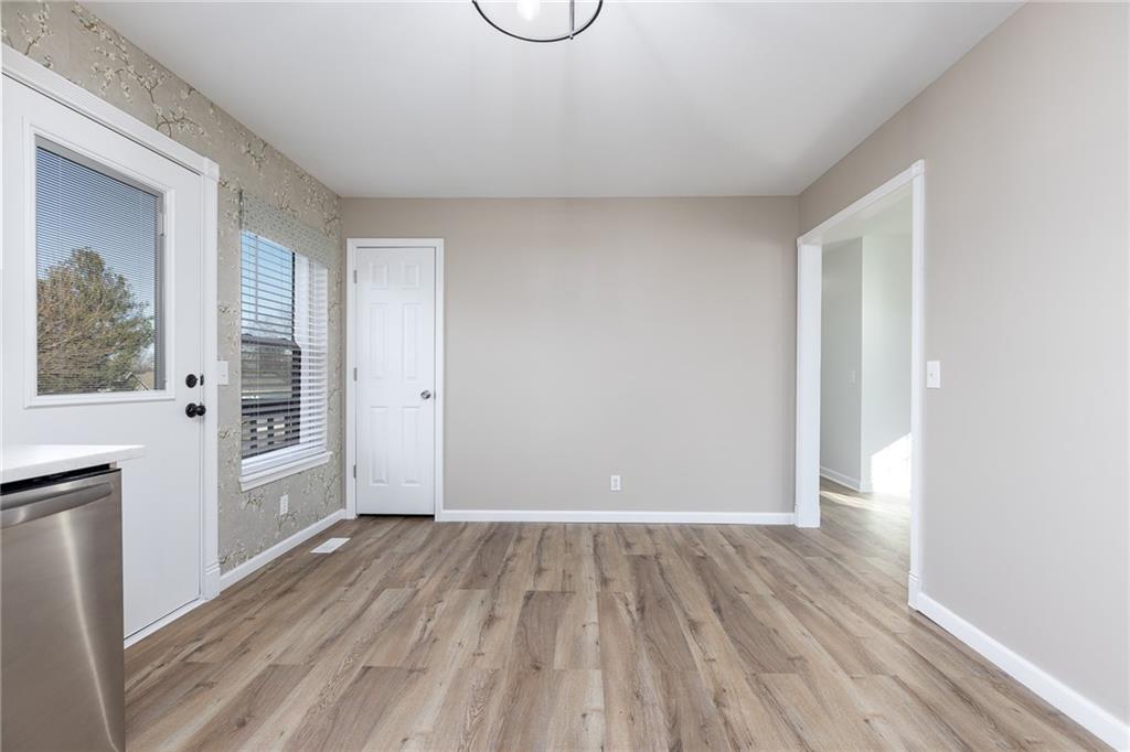 Move in ready, Kearney raised ranch. 3 bed room two full baths and stubbed for a full third bath in unfinished basement. Deep two car rear entry garage, full privacy fenced back yard. Remodeled featuring: New roof and gutters in Oct 2025, all flooring removed to original subfloor and replaced with Luxury Vinyl Plank and carpet. New dishwasher, full interior paint and recent exterior paint. New hot water heater. New quartz counter top and backsplash. New soaker bath tub/shower installed in primary bedroom bath and new vanity and stool. Deck pressure washed, sealed and stained. All windows and doors on main level replaced 2022, furnace and air replaced 2018, and hall bathroom updated in 2023.