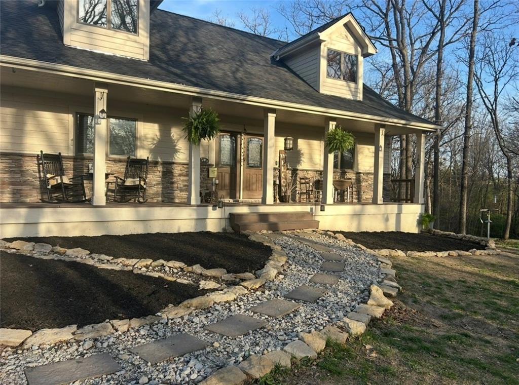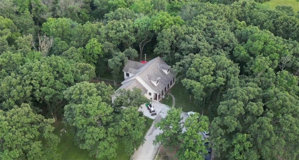 A true slice of paradise awaits with this custom-built 3-bedroom, 2.5-bath home set on nearly 10 acres of peaceful countryside. Surrounded by mature timber, open pasture, 1/4 acre pond, and extensive walking and riding trails, this property offers privacy, beauty, and functionality. A nearly 500 yard long driveway leads you to your own private retreat and an impressive 30x48 shop, fully insulated with closed-cell spray foam, featuring concrete floors, its own electric meter, 100-amp service, and two 8x10 garage doors with automatic openers. A brand-new Class 4 high-impact roof was installed in June 2025 and includes a 25-year warranty. Inside, the open-concept layout showcases vaulted wood ceilings and a striking floor-to-ceiling stone, wood-burning fireplace, creating a warm and inviting great room that anchors the home. Custom cabinetry, walnut-stained alder ceilings, birch hardwood flooring, alder trim, and custom doors highlight the craftsmanship throughout. The kitchen is appointed with granite countertops, stainless steel appliances, a gas cooktop, walk-in pantry, and ample storage. Outdoor living is enhanced by an 18x16 deck with illuminated railing, grill bump-out, and extended walkway—perfect for entertaining or enjoying the serene surroundings. Additional highlights include a Marathon Rheem 50-gallon water heater with lifetime tank warranty, water softener, whole-house water filtration system, GEO Thermal ground source heat pump, Andersen windows, and durable 2x6 exterior walls. A fenced backyard with doghouse and direct access to the home adds convenience, while the unfinished walk-out basement offers endless potential for future living space, workshop, or recreation area. Completing the beauty of this retreat-style home, this exceptional property blends craftsmanship, energy efficiency, and natural surroundings for refined country living at its finest.