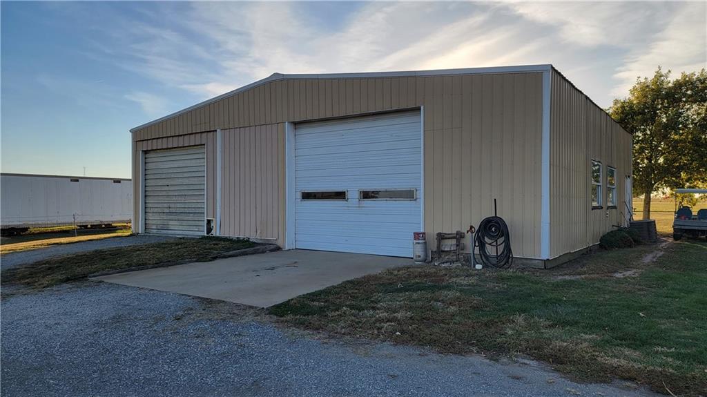 Ready to move to the country? With 5 acres +/-, this 3 bedroom, 2 full bathroom ranch is a great place to start! It is being sold as is, but the sweat equity in this all-brick front home is abundant. Spacious kitchen with lots of cabinet space, an island and all appliances provided. Large living room with a brick, wood burning fireplace. The basement has 3 ways to gain access - one is through the garage, one is from the outside and one is a spiral staircase from the living room. The downstairs also features a second kitchen and a second laundry room, great for guests! When you walk out the back door, you will see the large 30'x18' concrete patio, great for entertaining or enjoying morning coffee. Keep going and head out to the 48'x40' shop 12'x10' southside. The shop is divided down the middle with concrete floors throughout 12'x14' heated and has lots of storage up on the mezzanine and in the parts room. The other side of the shop has a separate room divided 12'x10' also with lots of mezzanine storage. There is also a 32'x27' lean-to shed for equipment storage or would be great for livestock. Come take a look at this property, it's on blacktop!