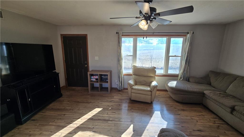 Looking for that country feel on the edge of small town America? Look no further! This charming home in a quiet neighborhood with a southern view has plenty of space for your needs. Fully covered front deck overlooking country acreage! Large driveway with room for 6+ vehicles, open backyard through the double patio door and a storage shed. Large windows in the living room and an open kitchen/dining area with a pantry closet. Large primary bedroom, second bedroom, and full updated bathroom on the main floor. Two additional non-conforming bedrooms, office/hobby room and a large family/game room with walkout on the ground/basement level. Plenty of room for improvement or customization so bring your ideas! Small town living with high speed internet to keep you connected. Don't miss this chance for an affordable home. Call to schedule your showing today!