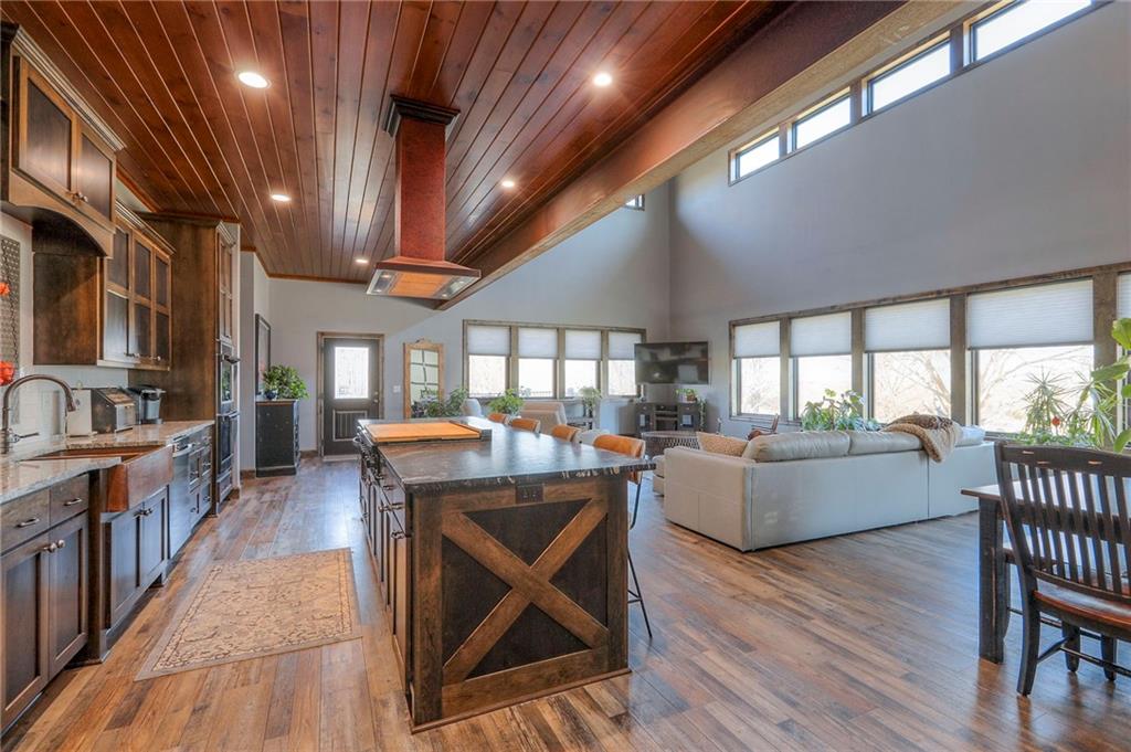 5835 sq foot of bliss and beauty on .85 of an acre. Main level has 2160 sqft of a wide open living room and kitchen area with a 1/2 bathroom a walk in pantry and main floor laundry room. The master bedroom is absolutely gorgeous with a huge master bathroom and walk in closet. The master bathroom boasts a custom corner jetted tub along with his and hers sinks and a great big walk in shower to escape the daily routine in with a bench, rain shower head, a hand wand and 4 body heads with dual faucets. A beautiful oversized staircase leads you up to the second level of 1515 sqft consisting of a loft setting area overlooking the main floor living room. The second level also includes two identical large bedrooms with walk in closets and a full oversized bathroom. The walkout basement has 2160 sqft of a rec/living room with a 1/2 bathroom, a mechanical room with a 100 gallon hot water heater and HVAC equipment for the main floor and a 200 amp breaker box. A brick veneer hallway leads to the basement in-law suite with a full bathroom and walk in closet. To finish off the basement there is a fitness room for the active fit person. Then there is the attached garage with a 10” concrete zero entry floor to handle anything. No steps to traverse to get into the kitchen, floor is all one level. The garage is 48’ deep by 56’ wide, 2688 sqft. It has 3-12’x11’ overhead doors 200 amp electrical service and scissor trusses for added ceiling height. The 56’ loft over a full bathroom, insulated work room, and insulated storage room makes storage a snap. A full glass 6’x8’ overhead door between the garage and kitchen makes it unique. A 6” thick concrete driveway leads to all of this. A 26’x18’ composite deck with two tier steps for morning coffee or evening entertainment leads to a stamped concrete patio off the basement entry door. Built with 2x6 exterior walls and TJI silent floor joists and a truss roof. All electric with propane island cooktop and propane heat.