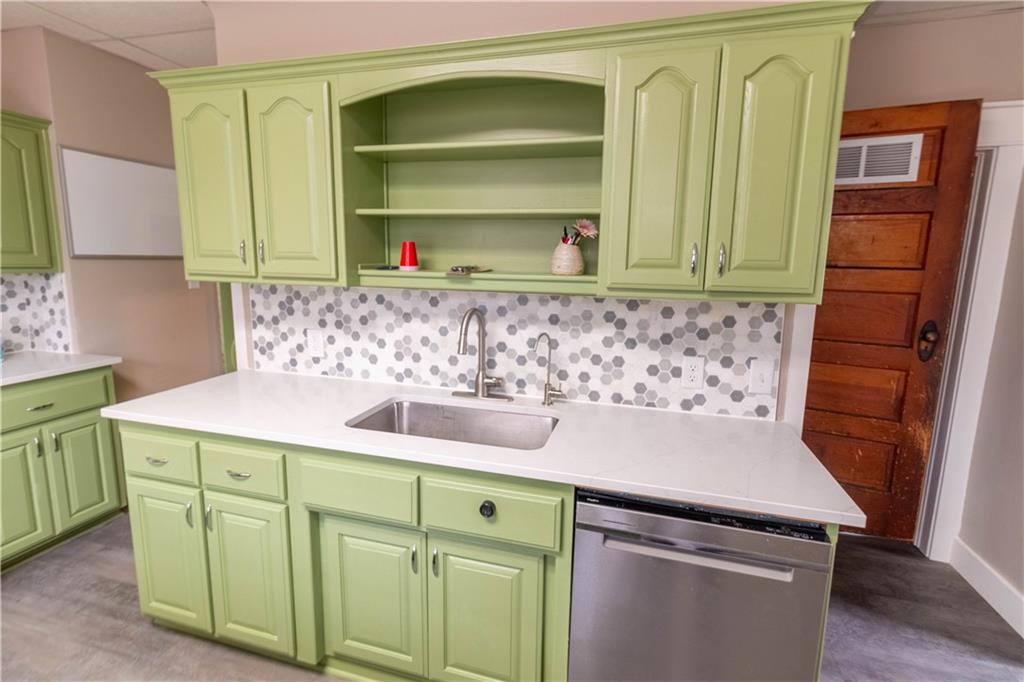 This spacious four-bedroom home offers a thoughtful layout with two bedrooms upstairs and two downstairs, along with two full bathrooms—one on each level—for added convenience. All rooms are generously sized, creating a comfortable and open feel throughout the home. Inside, you’ll find hardwood floors, solid-surface countertops, and newly painted cabinets that give the interior a fresh, updated look. The upstairs also features a large central room between the two bedrooms, ideal for a home office, media space, or additional family area. A large, covered front porch provides a welcoming place to relax and enjoy the outdoors. The property includes owned and fully paid-for solar panels, which significantly reduce electric bills, as well as a detached two-car garage with an expansive above-garage storage area perfect for extra storage or hobbies.