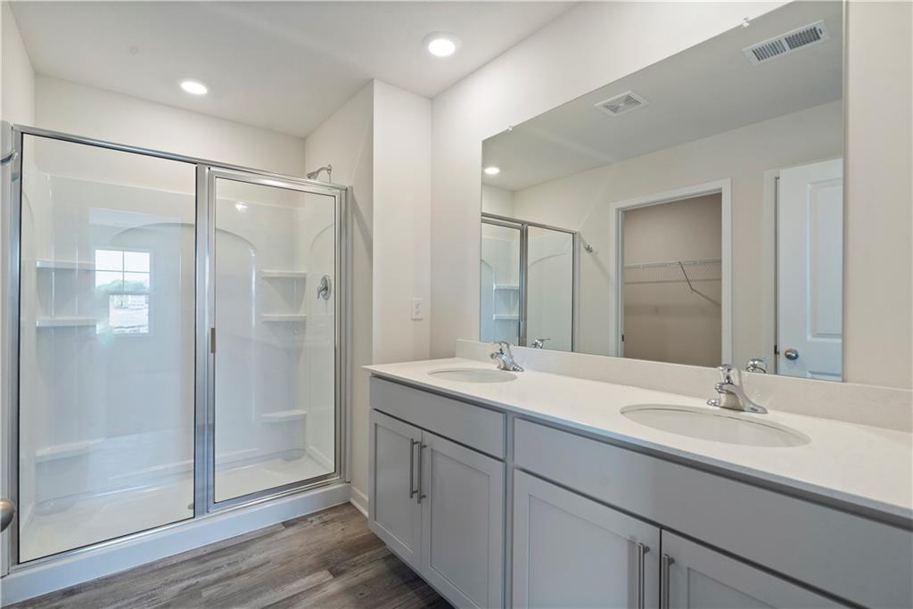 Discover a home where modern elegance meets everyday convenience, nestled in the heart of the Woodland Crossing community. Built by D.R. Horton, this stunning residence combines superior craftsmanship with the latest in-home design, creating a space that’s as functional as it is beautiful. The exterior of the home is nothing short of impressive, featuring James Hardie® siding with board and batten and stone accents. A stylish insulated front door not only welcomes you warmly but contributes to the home’s overall energy efficiency. As you step inside, you’ll be greeted by 9-foot ceilings that lend a spacious feel to the living areas. The gourmet kitchen, equipped with 36-inch painted maple cabinets, quartz countertops, and a suite of Whirlpool® stainless steel appliances, is perfect for both everyday meals and entertaining. The bathrooms are designed to be your personal sanctuary, with features like quartz-topped vanities, Moen® Chrome Faucets, and spacious showers creating a serene retreat from the hustle and bustle of daily life. This home is also equipped with cutting-edge Smart Home technology. Control your environment effortlessly with a Honeywell® Pro Z-Wave® Thermostat, Amazon Echo, and a connected home panel, all designed to make your life easier and more comfortable. LED lighting throughout the home, and energy-efficient insulated windows ensure that this home is as practical as it is beautiful. From luxury vinyl plank flooring to a garage complete with an opener(s), every detail in this home has been thoughtfully considered. The dual data/TV lines in the main bedroom and family room demonstrate a commitment to convenience and modern living. D.R. Horton’s attention to detail and dedication to quality are evident in every corner of this home. Don’t miss the opportunity to own this exceptional property in Woodland Crossing. Schedule a tour today and see for yourself why this home is the perfect blend of luxury and convenience.