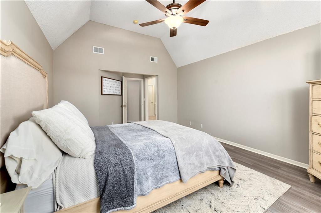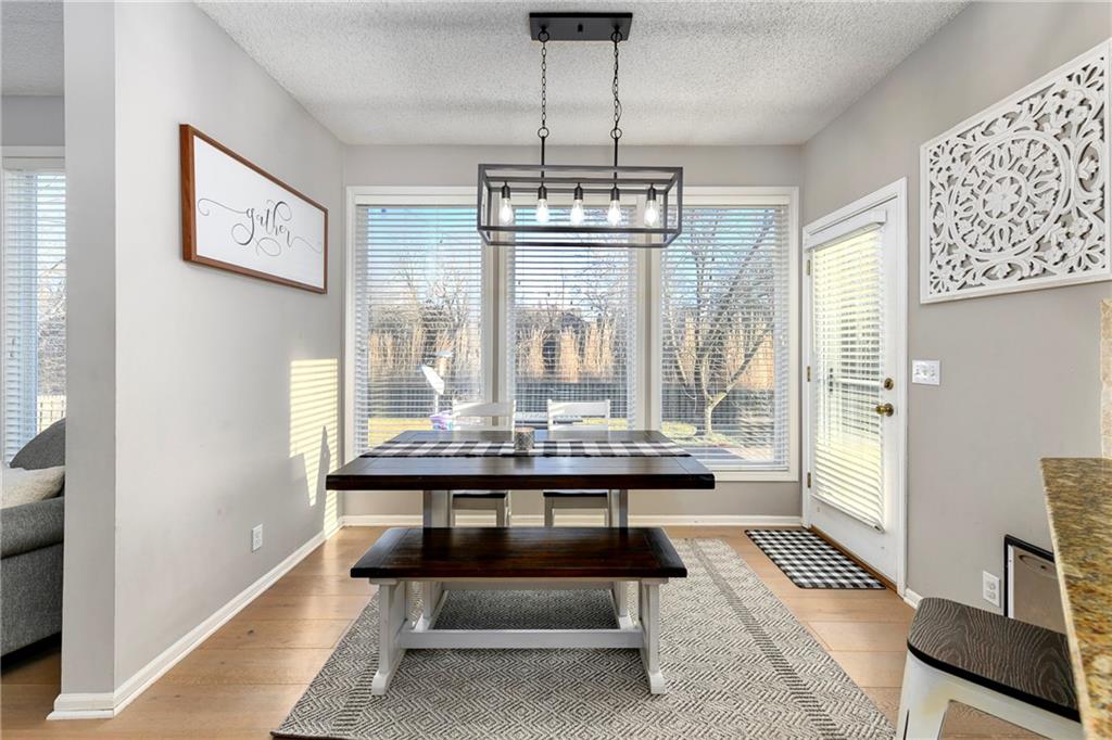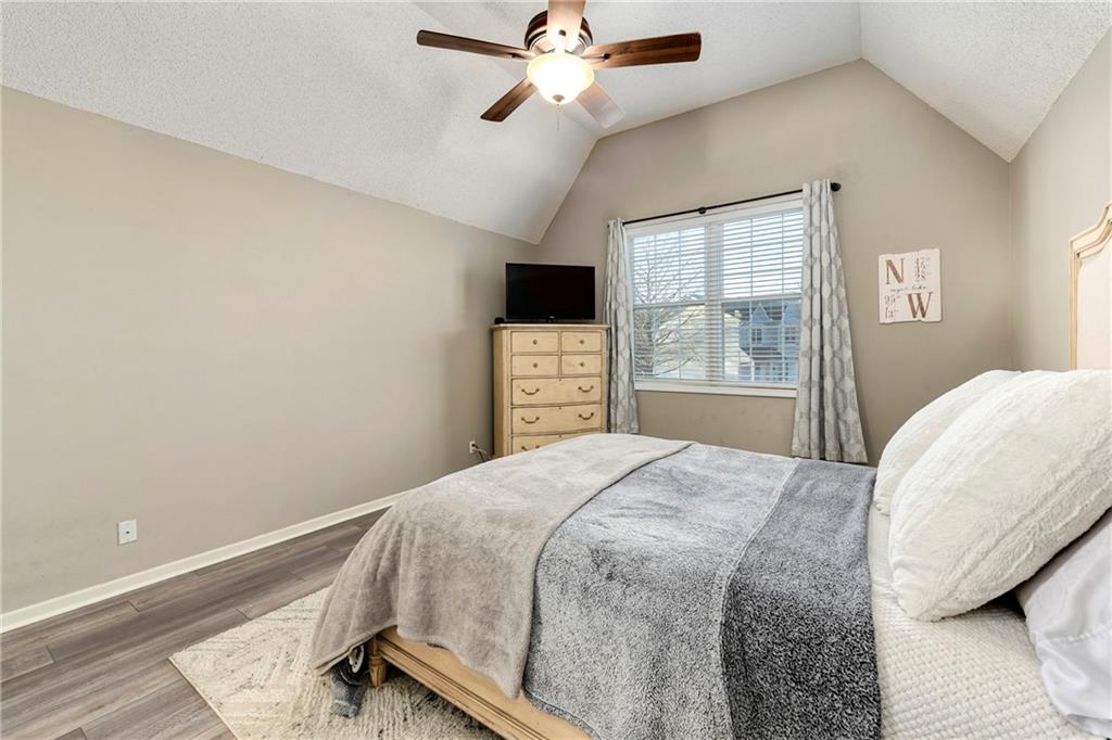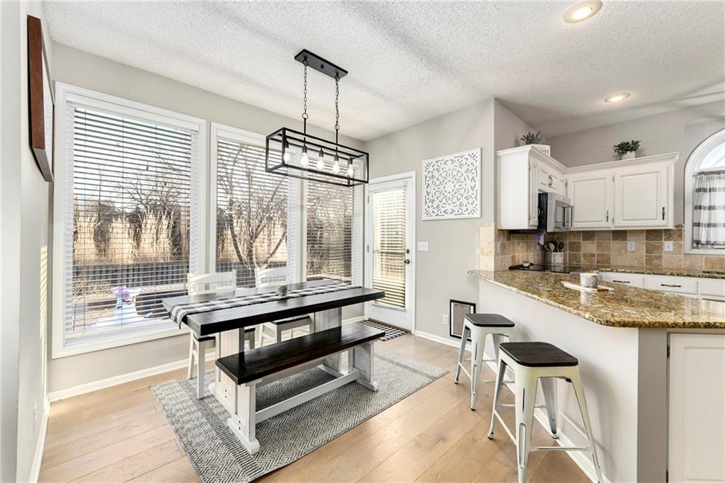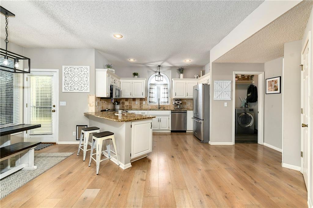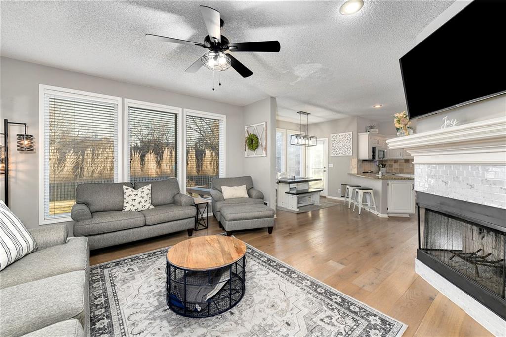 Knockout 2-story in a fantastic location! This gorgeous, move-in-ready home features wide-plank hardwood floors throughout the main level and a dynamic, open floor plan centered around a two-sided fireplace enjoyed from both the great room and kitchen. The bright kitchen offers white cabinetry, granite countertops, updated stainless steel appliances, and opens to a stylish breakfast room—perfect for everyday living and entertaining. Upstairs, the primary suite is a true retreat with LVP flooring, a dramatic vaulted ceiling, a spacious walk-in closet, and a private bath complete with transom window, oversized shower with seat, double vanity, and heated tile floors. Secondary bedrooms are generously sized with excellent closet space and share a Hollywood bath with double vanity. Recent updates include flooring throughout, updated light fixtures and interior paint, an updated fireplace façade, fresh exterior paint and new garage doors in 2025. A radon mitigation system adds peace of mind. The private, fenced backyard backs to greenspace and the Indian Creek Trail—an ideal setting to relax or entertain on the composite deck with built-in seating. An in-ground sprinkler system helps keep the yard looking its best. Enjoy neighborhood amenities including a pool, trails, playground, and regularly planned community social events like parade & egg hunt. Plus the elementary school is just a few blocks away. This home truly offers the total package at an exceptional value. Schedule your showing today!