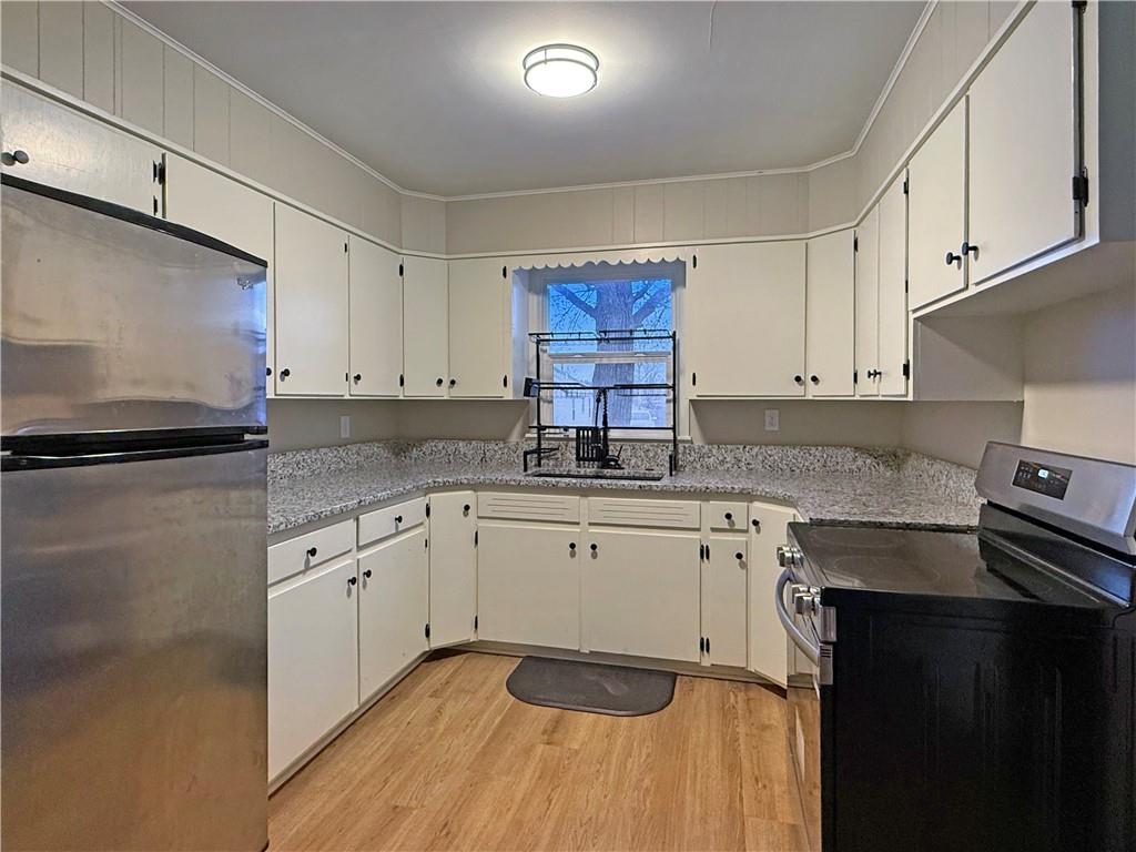 Welcome to this updated and move-in-ready 3-bedroom bungalow offering both comfort and functionality. The home features a cohesive palette of neutral colors and durable luxury vinyl plank flooring throughout, creating a clean, modern feel. Both full bathrooms have been remodeled, providing added convenience for everyday living. The main level offers a cozy yet functional layout, while the basement includes a second full bathroom and laundry area. The remaining unfinished basement space offers excellent potential for storage, a workout area, or a craft or hobby space. An attached carport provides covered parking, and the partially fenced backyard offers space for outdoor enjoyment. A well-maintained home ready for its next owner.