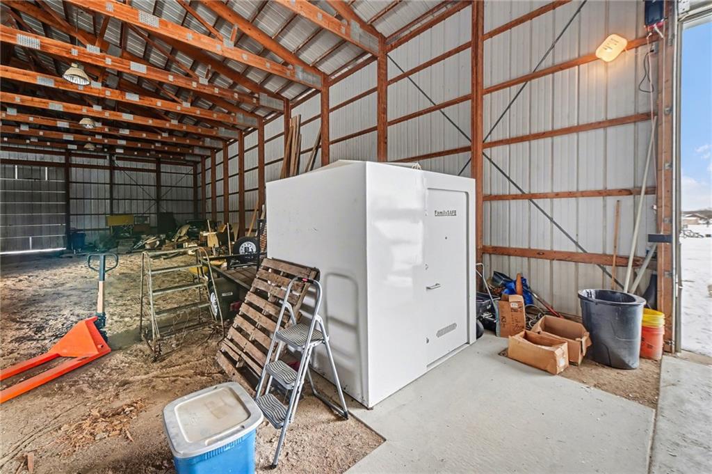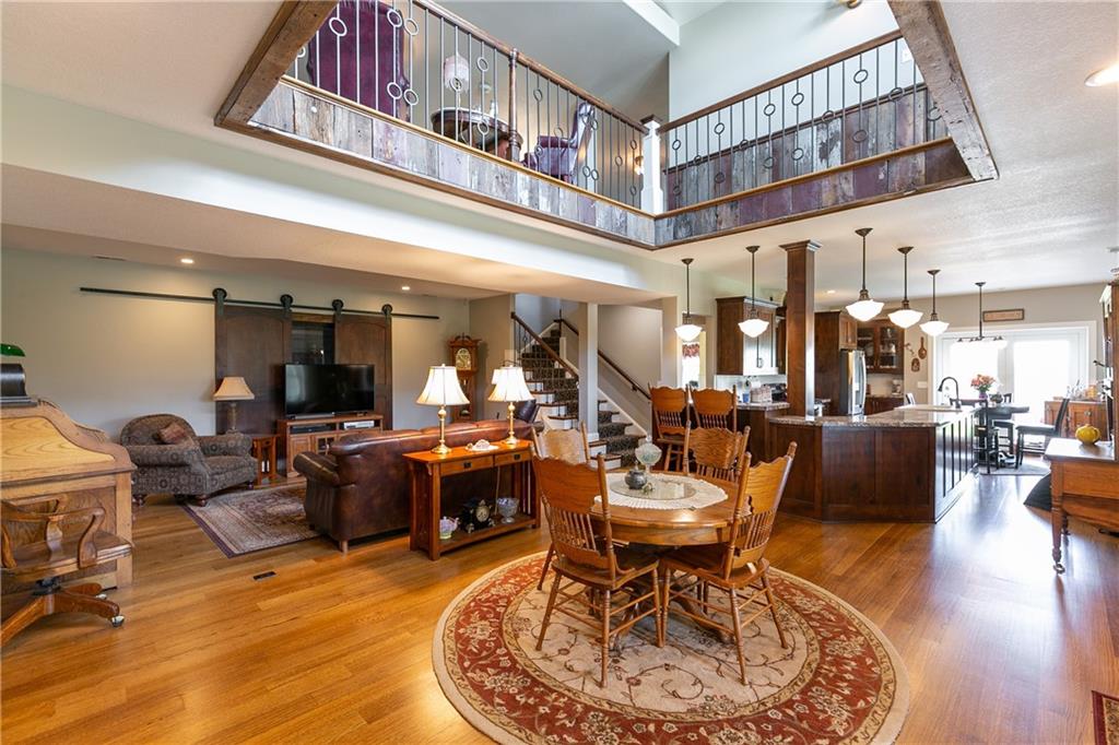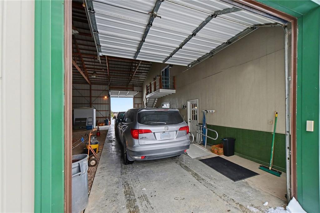 Incredible BARNDOMINIMUM on 15 acres in rural Leavenworth County. Enjoy peaceful country living with convenient highway access in this stunning barn-style home that truly has it all. A large covered front porch welcomes you into approximately 3,500± square feet featuring an expansive open floor plan ideal for comfort and entertaining. Inside, you’ll find custom cabinetry, barn doors, hardwood floors, and tile surfaces throughout. The main-level primary suite was designed for long-term living and includes a zero-entry walk-in shower with heated floors. A built-in tornado shelter adds peace of mind, and abundant storage is available throughout the home. This versatile property also features a 60’ x 90’ horse arena and multiple garage and workshop spaces. In addition to the attached two-car garage, there is a bonus one-car garage/workshop and an additional 24’ x 20’ rear storage area, perfect for equipment, hobbies, or extra vehicles. This is a one-of-a-kind property that offers something for everyone. It’s the one you waited for!!