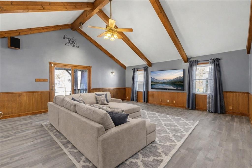 This charming Craftsman style home sits on a quiet street with the loveliest neighbors. One of the standout features of this home is the oversized living space added to the back — with vaulted ceilings and beautiful natural light, this area is incredibly spacious and makes the perfect living/dining combo or true hangout quarters of the house. Both main-level bedrooms feature brand new carpet and are separated by a full bathroom, offering a great layout and privacy. Laundry has been thoughtfully moved to the main level for easy one-level living, but can easily be converted back to a traditional closet with laundry returned to the basement if preferred. LVP flooring has been added throughout the living room and great room, giving the home a fresh, updated feel. Step out front and enjoy the covered porch — just add a couple of chairs and you have the perfect spot to relax, rain or shine. Out back, you’ll love the privacy-fenced yard and oversized covered deck. This home also offers a non-conforming bedroom in the basement with a workshop area, built-in storage cabinets, and a utility sink. The detached garage offers more than just parking — it’s perfect for a workshop, hobbies, or extra storage, and the home also provides plenty of off-street parking.