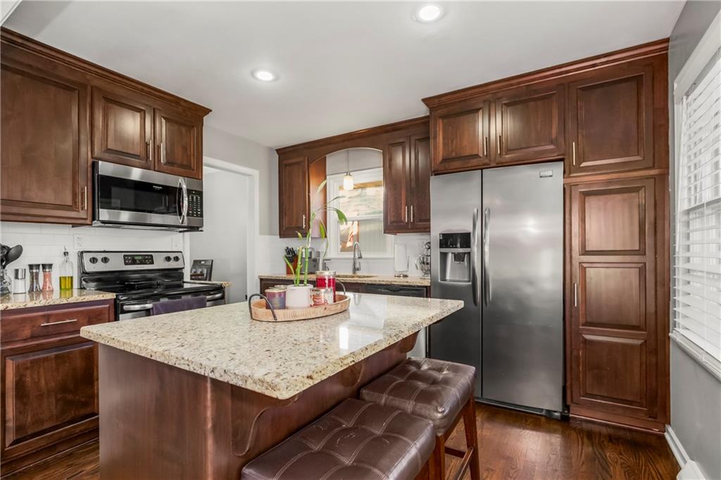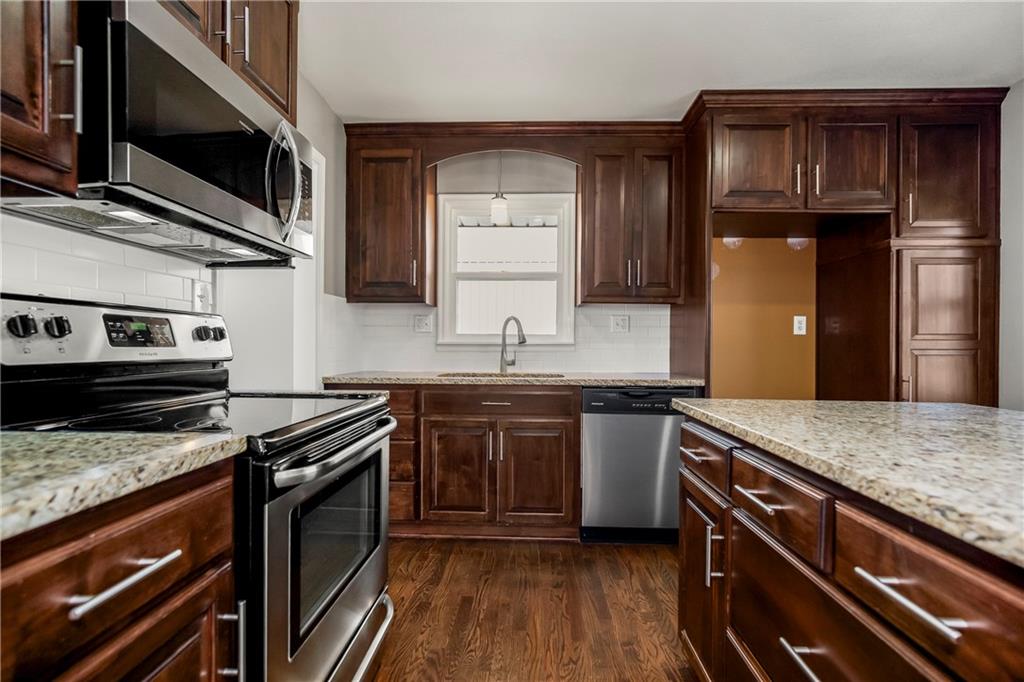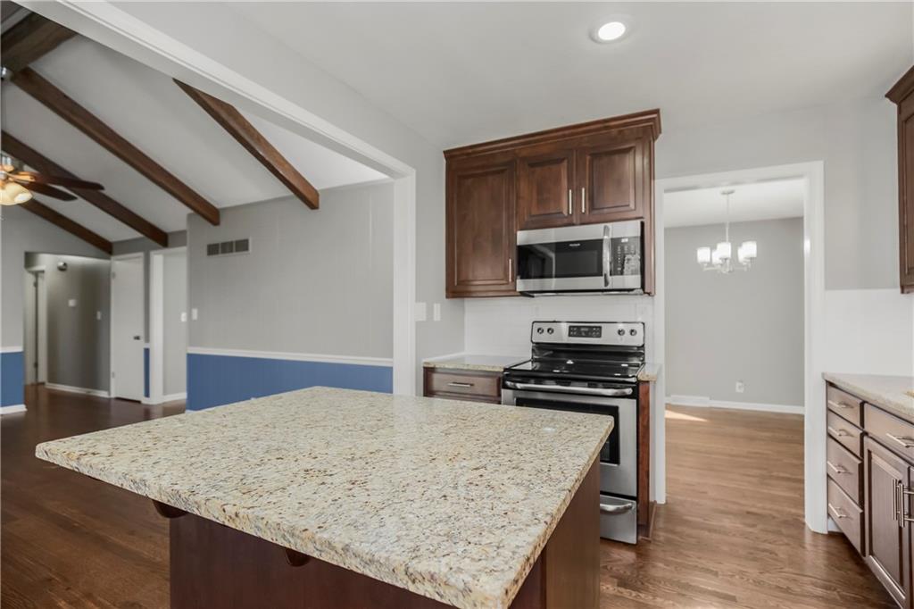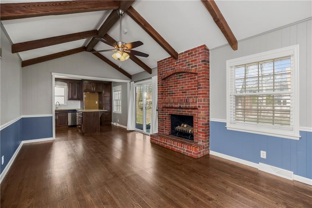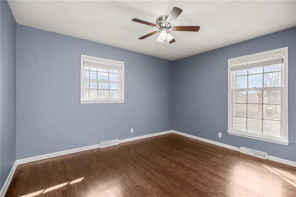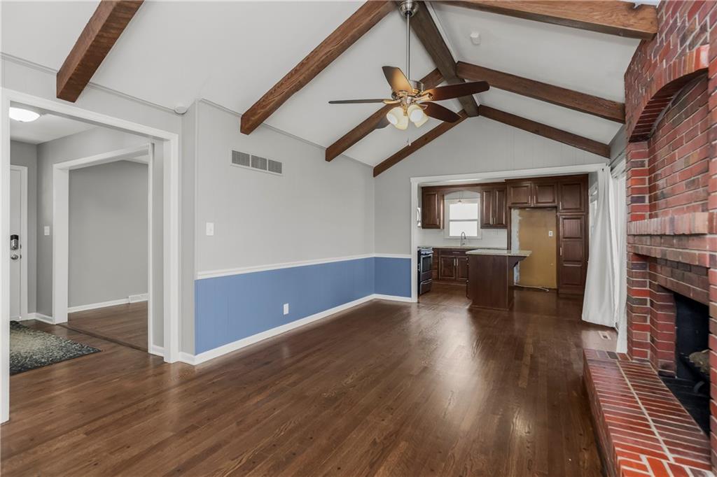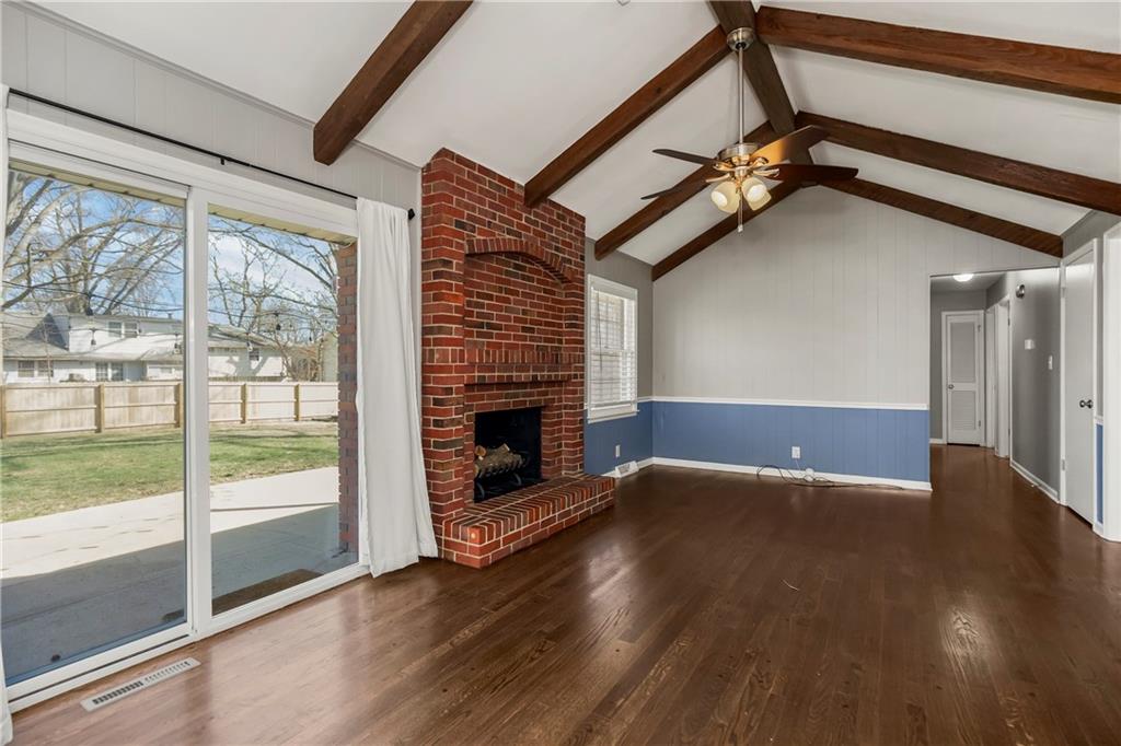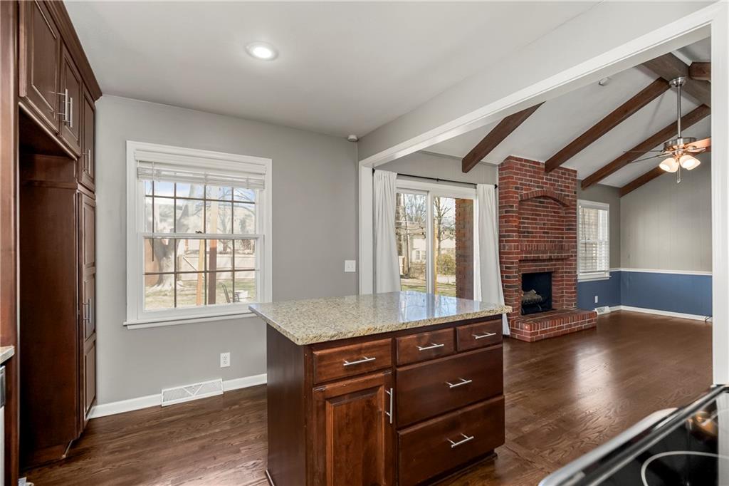 Nestled in the heart of sought after Gladstone MO! This Bold Beautiful Brick Home is perfectly synced in a classically modern style, with thoughtful updates, and new additions. Newly refinished Original Hardwood flooring, Recently Renovated Primary En Suite Bath with an Onyx Tiled Shower and a New Vanity, Granite Countertops throughout, Newly Installed Garage Doors, Fresh Interior and Exterior Paint, New HVAC system, New Water Heater, and Newly added Insulation provide value and comfort to the home. The formal sitting with Stunning Large Bay Windows provide a perfect flexible space for a home office, reading room, or an additional lounge area for entertaining guests. Flowing perfectly is the formal dining area into the culinary kitchen offering up a chef's dream with stainless steel appliances, granite countertops, beautiful shaker cabinetry, and a large center island. The Hearth Room features an vaulted ceilings adorned with beautiful exposed wood beams, a timeless brick fireplace—perfect for cozy evenings in. Large bedrooms, closets, and main level living provide all the convenience. The finished lower level adds a substantial bonus living space with plush carpeted flooring, a second beautiful brick wood-burning fireplace, a Large Commercial Grade Vault, built-ins, large laundry space with a half bath, featuring a new vanity, and ceramic tile flooring. This Wonderful home combines all the modern updates with newly installed big ticket items to provide a peace of mind. Outside, enjoy a large entertainment patio, a fully fenced backyard, with a partial privacy portion, and a new outdoor shed. Do not want to miss this Gorgeous HOME!!
