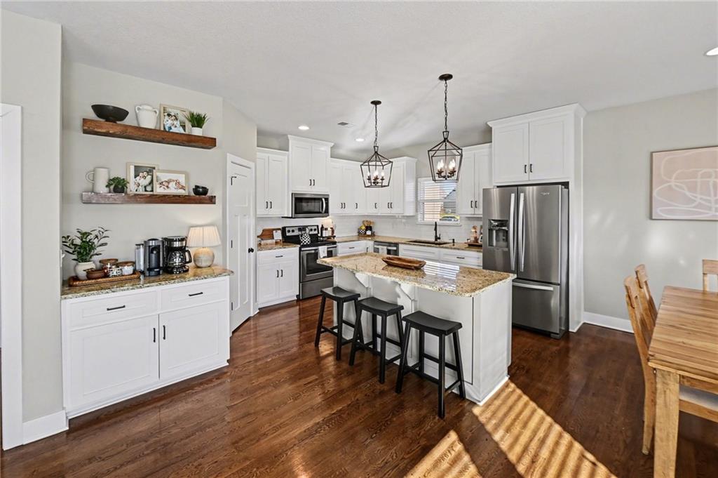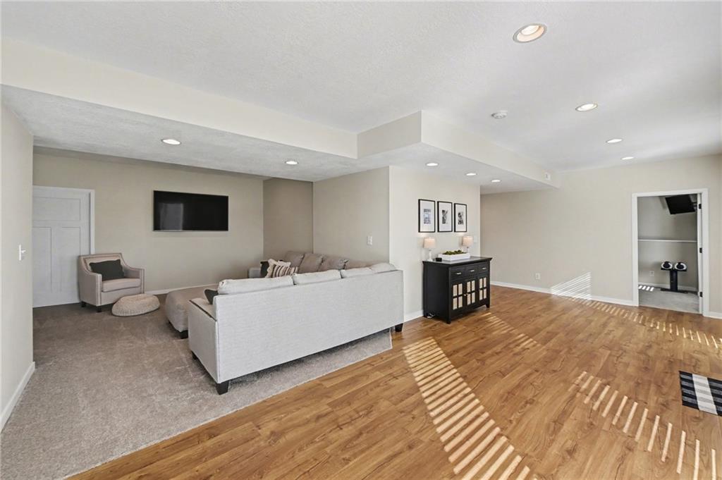 Meticulously maintained reverse 1.5-story home offering 4 bedrooms and 3.5 bathrooms, straight from the pages of a magazine. The open-concept kitchen and living area is ideal for both everyday living and entertaining, featuring granite countertops, hardwood floors, stainless steel appliances, and a charming coffee bar. The cozy living room is filled with beautiful natural light. The main level also includes a guest half bath, convenient laundry room, and a second bedroom with its own en-suite bathroom and walk-in closet. Enjoy outdoor living on the covered deck. The finished lower level offers two additional bedrooms, a full bathroom, a spacious second family room, and a versatile recreation space perfect for game nights and entertaining. Located on a quiet cul-de-sac in the highly sought-after Liberty School District.