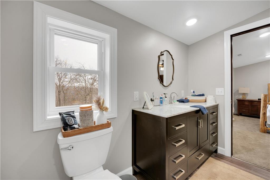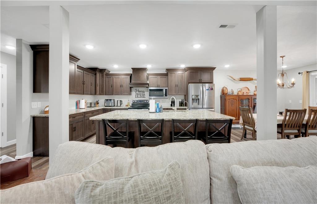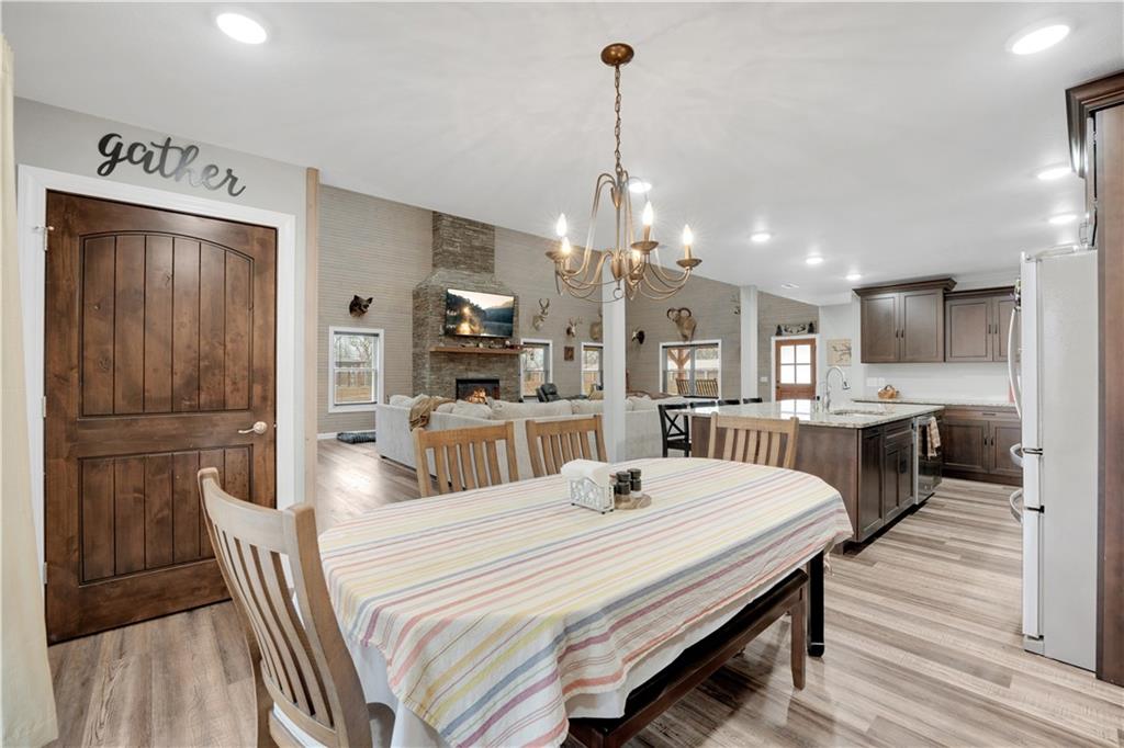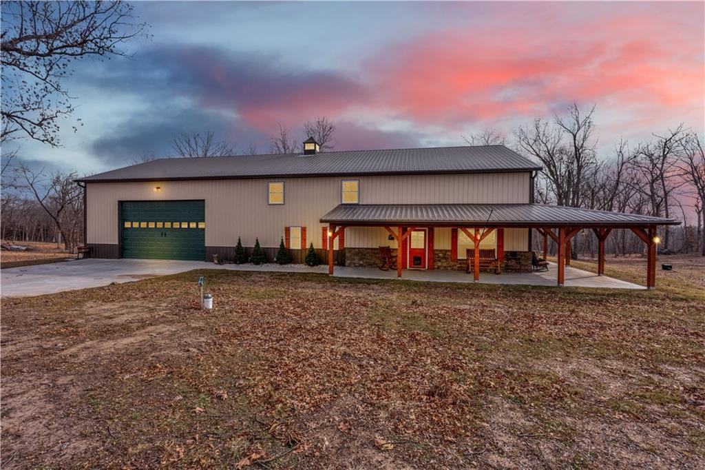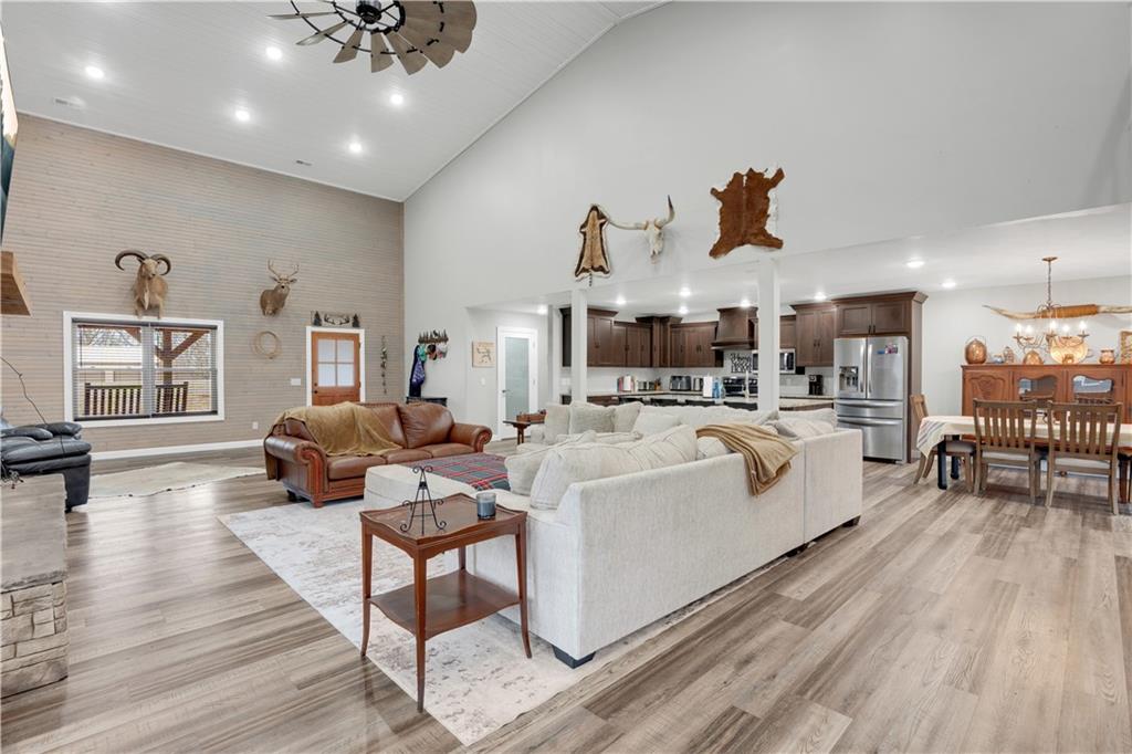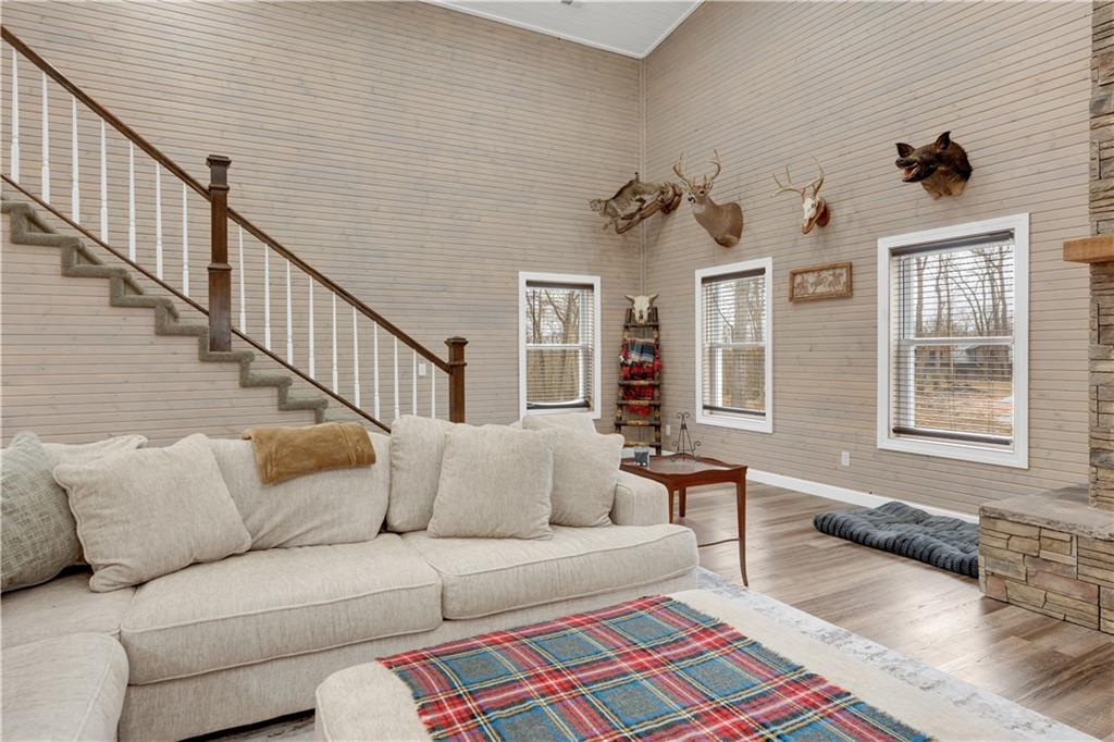 This expansive residence in Warsaw, MO, offers a harmonious blend of rustic charm and modern luxury. The two-story home boasts 4 bedrooms and 5 bathrooms, providing ample space for comfortable living. The heart of the home is the gourmet kitchen, featuring rich wooden cabinetry, granite countertops, and stainless steel appliances. The open concept layout seamlessly connects the kitchen to the dining and living areas, ideal for entertaining. The living room features a beautiful fireplace with floor to ceiling stone. Throughout the home, attention to detail is evident in the use of high-quality materials such as LVP floors, wood paneling, and decorative light fixtures. The property also includes practical spaces like a dedicated laundry room, walk-in pantry, and utility/storage rooms. Large windows offer views of the surrounding landscape, while a covered porch and deck provides outdoor living space. Newly installed oversized single overhead garage door will make storing your boat and toys as breezy as a spring day on the water! Each bedroom is generously sized and offers ample space for differing sleeping scenarios. Each room is thoughtfully designed with plush carpeting, ceiling fans, and ample natural light. The bathrooms showcase contemporary fixtures and finishes, including wood-look tile flooring and custom vanities. The home's design seamlessly blends rustic elements with modern conveniences, creating a warm and inviting atmosphere perfect for both everyday living and hosting gatherings. Don't miss this custom lake retreat!!