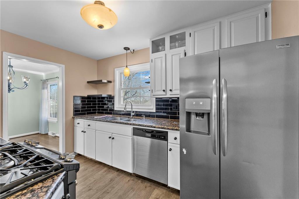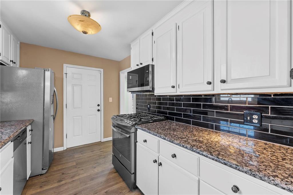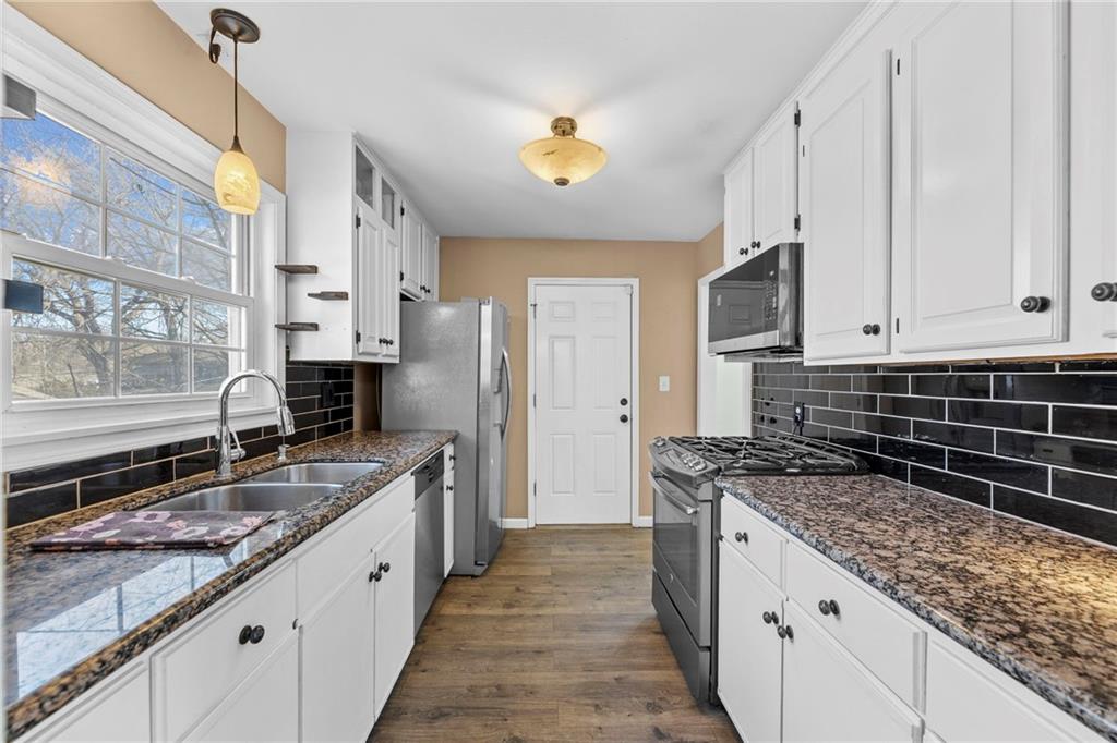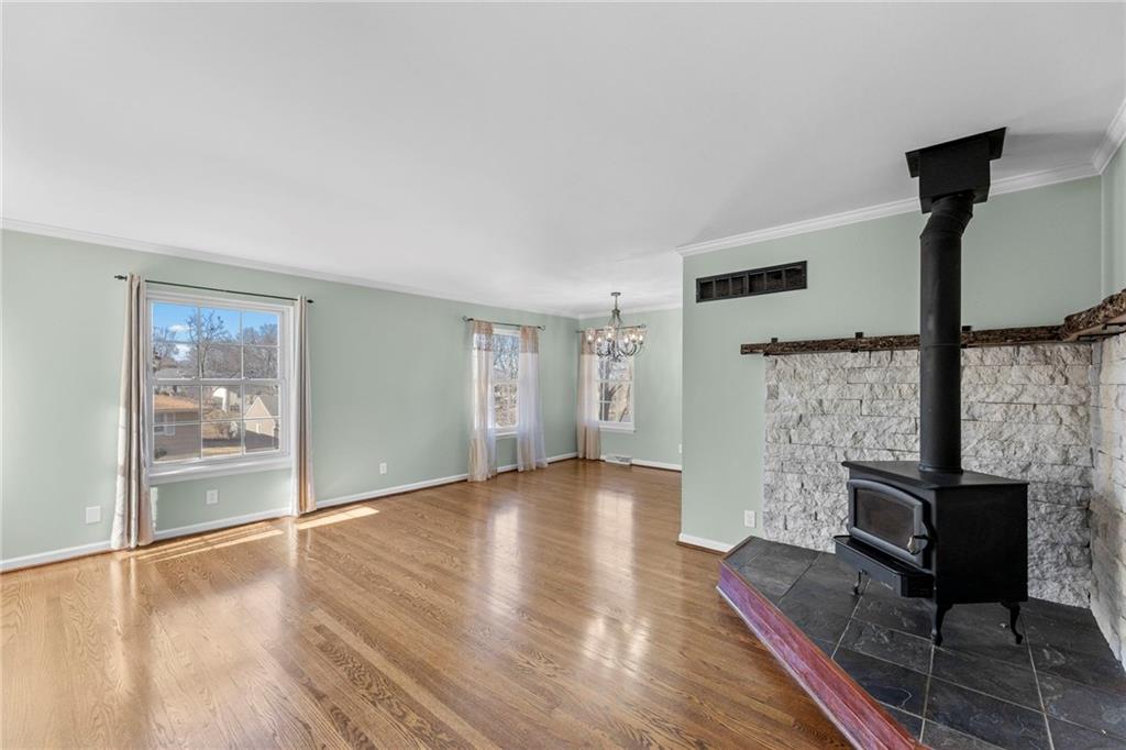 Lovely, move-in-ready 3 bedroom, 2.5 bath raised ranch located in a desirable neighborhood with walking trails and an elementary school just a short walk away. This well-maintained home features beautiful original hardwood floors in the living room, hallway, and bedrooms, with new LVP flooring in the kitchen and sitting room. Enjoy two spacious living areas, one highlighted by a cozy wood-burning stove with an updated walnut mantel, plus newer windows throughout that fill the home with abundant natural light. The home has seen extensive updates over the past three years, including a new water heater and a refreshed kitchen with updated upper cabinets, backsplash, and new appliances; stove, dishwasher, disposal, microwave, and refrigerator. Both bathrooms feature new plumbing, and the primary bath has been updated with new insulation, drywall, tile, vanity, shower pan, and glass door. The unfinished basement with utilities provides opportunity for more square footage or great storage with a newer half bath. Outdoor spaces have been thoughtfully improved as well. The backyard offers a re-leveled patio with added pavers and edging, a pergola cemented in place, freshly seeded grass, and mature landscaping including blueberry bushes, grape vines, and peach trees. The front yard features new landscaping that will come alive in spring, a two-level flower bed designed to prevent runoff into the driveway, and the removal of dead trees and limbs, creating great curb appeal. This home combines comfort, updates, and location - perfect for enjoying both indoor living and outdoor amenities.