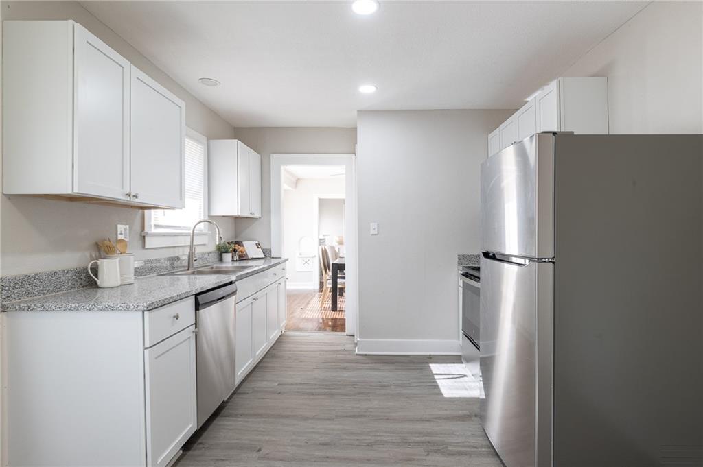 Here is an awesome opportunity to get a move in ready home w/ countless updates to mention! Great location near highway access, shopping/ dining or wherever you may need to get in the metro. Brand new windows and garage door, fresh exterior & interior paint, hardwood floors professionally refinished, new fixtures throughout! The kitchen has been completely updated with new flooring, cabinets, countertops/ backsplash and NEW appliances staying w/ the home! Both bathrooms have been remodeled with new flooring, vanities and new shower! The basement provides great storage and indoor parking!! Come check it out today!