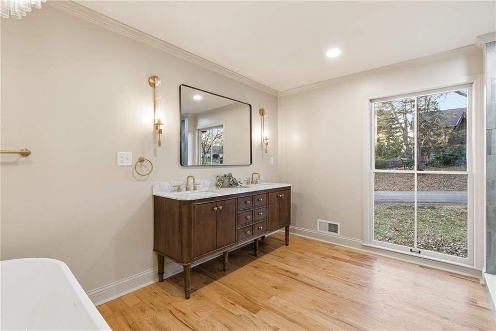 Welcome to this beautifully updated 5-bedroom, 3.1-bath home located in the heart of Leawood. Thoughtfully designed with a functional and flexible layout, this home offers three bedrooms on the main level, including a spacious primary suite featuring two oversized walk-in closets and a spa-like primary bathroom complete with a soaker tub and walk-in shower. After enjoying the contemporary designs of the main level, you’ll be amazed by the walkout basement level which is truly the gem of the home. Flooded with natural light and offering direct access to the backyard, the lower level features a small bedroom, extra large entertainment area and another exceptionally large bedroom with a fireplace, ideal for a second primary suite, private guest quarters, home theater, or multi-purpose entertainment space. Additional highlights include brand new furnace and air conditioner, numerous upgrades throughout, and a layout well-suited for both daily living and hosting.