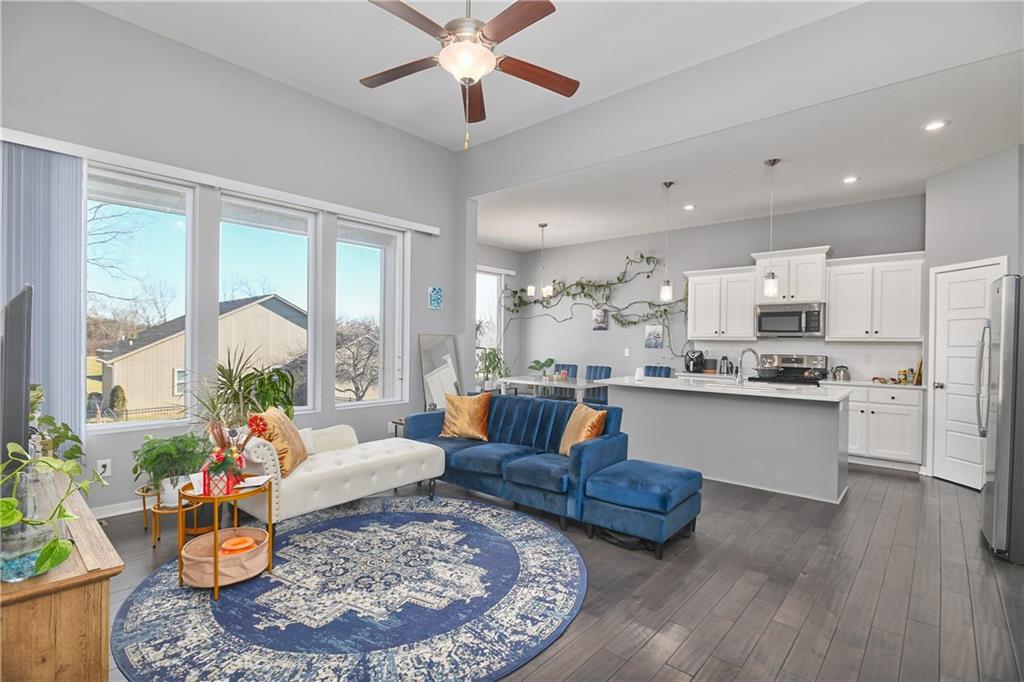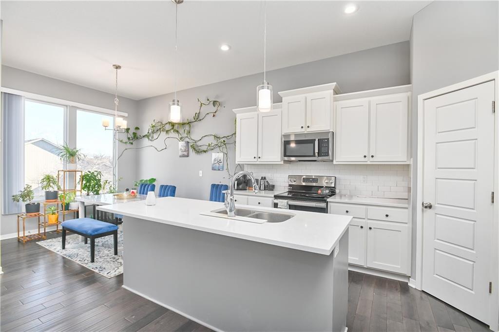 Welcome to 3421 N 128th Street, a beautifully maintained 4-bedroom, 3-bathroom home in the heart of Kansas City, Kansas. This inviting residence blends modern comfort with timeless style and thoughtful design throughout. Step inside to an open-concept living space filled with natural light. The spacious living room features large windows overlooking the backyard, sleek hardwood floors, and plenty of room for both relaxing and entertaining. The adjacent kitchen is a chef’s delight — bright white cabinetry, stainless steel appliances, a generous island with seating, and pendant lighting create a seamless blend of function and style. The main level hosts comfortable living areas and easy flow into the dining space, perfect for family meals or hosting guests. With its fresh neutral palette and modern finishes, every room feels warm and welcoming. Upstairs, you’ll find Three well-proportioned bedrooms including a serene primary suite. Each bathroom is updated with contemporary fixtures and clean lines, offering both convenience and comfort. Outside, the home’s attractive curb appeal features a three-car garage, manicured landscaping, and a driveway that provides ample parking. The yard offers space for outdoor enjoyment and future personalization. Located in a friendly neighborhood with easy access to local amenities, shopping, parks, and schools, This home is a must-see property that combines style, space, and functionality
