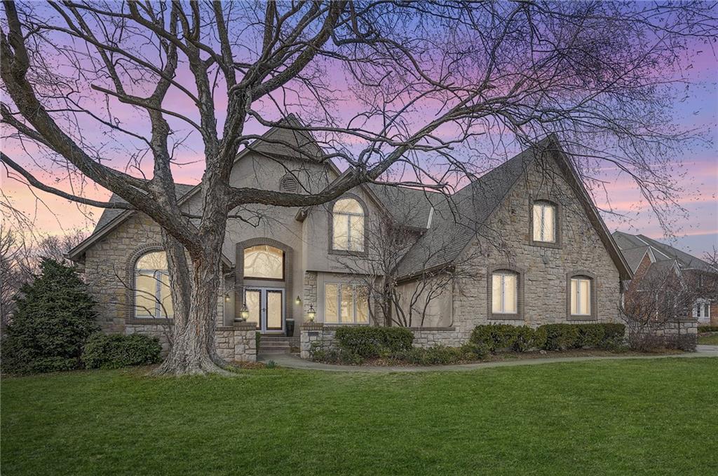 Welcome to this expansive and well-built 1.5-story home offering 4,224 square feet on the main & second floors, plus a large finished walkout basement with 1,500 finished square feet. The home sits on a beautifully landscaped lot in a prime Overland Park location. You’re greeted through a leaded glass front door from a charming courtyard into an impressive two-story entry, where a nearby three-story fireplace anchors the home & immediately showcases its grand scale. The main level features a spacious living room with wood beams, a fireplace & abundant natural light. A large formal dining room easily accommodates entertaining on a grand scale. The kitchen boasts several high-end Wolf appliances & a four-burner gas stove with a griddle. Just off the kitchen is an exceptionally large laundry room. The main-floor primary suite features a vaulted ceiling, generous closet space, and an en-suite bath with separate tub and shower and extensive storage. The second floor offers three very large bedrooms, excellent closets, and two and one-half bathrooms. The half bathroom could potentially become a second laundry room. There is also a bonus room featuring a wet bar, a fireplace and a large vaulted ceiling. It has the potential to serve as a second primary suite. The finished walkout basement is designed for entertaining, with a large bar, multiple gathering areas, wine storage, an additional bedroom and full bath, and access to a spacious patio. There is also significant unfinished space. Additional highlights include a huge deck overlooking the private lot, mature landscaping, a deep side-entry garage well-suited for large SUVs, trucks, and storage, zoned HVAC, partial HVAC replacement, and a major investment in several newer windows. This home offers a rare opportunity—exceptional bones, generous proportions, and a premier location with excellent schools, quick highway access, and nearby shopping and dining—ready for the next owner to bring their design vision to life.
