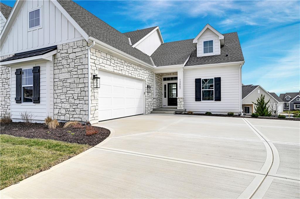 Spring Parade of Homes Entry #184 MOVE-IN READY!!! Welcome to Chapel Hill Villas in Overland Park, Kansas — a premier maintenance-provided community offering upscale, lock-and-leave living in the Spring Hill School District. This luxury twin-villa residence showcases the award-winning “Monroe” floor plan, with the GC James Engle Custom Homes, featuring elegant design, open-concept spaces, and effortless main-level living. With 1,680 square feet on the main level, this reverse 1.5-story home blends function and style through bright, vaulted ceilings, wide-plank hardwood floors, and designer finishes. The gourmet kitchen includes quartz countertops, a stainless steel appliance package, and ample cabinetry, flowing into a spacious great room ideal for entertaining or relaxing. The primary suite features a zero-entry shower, upgraded tile, and a walk-in closet designed for convenience and comfort. A second bedroom or study on the main level provides flexibility for guests or a home office. The finished lower level includes a recreation room, wet bar, and third bedroom and bath, with optional fourth bedroom and bath available—perfect for hosting or extended-stay guests. Enjoy the outdoors from your covered patio, surrounded by a serene, maintenance-free setting. Residents benefit from lawn care and snow removal included, making everyday living effortless. Community amenities include two swimming pools, a clubhouse, walking trails, and pickleball courts, all set within a vibrant and friendly neighborhood. Conveniently located near 69 Highway, shopping, dining, and recreation, Chapel Hill Villas delivers the perfect balance of luxury, lifestyle, and convenience in sought-after South Overland Park. Discover the “Monroe” floor plan — sophisticated, low-maintenance living built with quality craftsmanship and timeless appeal. Lot 13 Completed