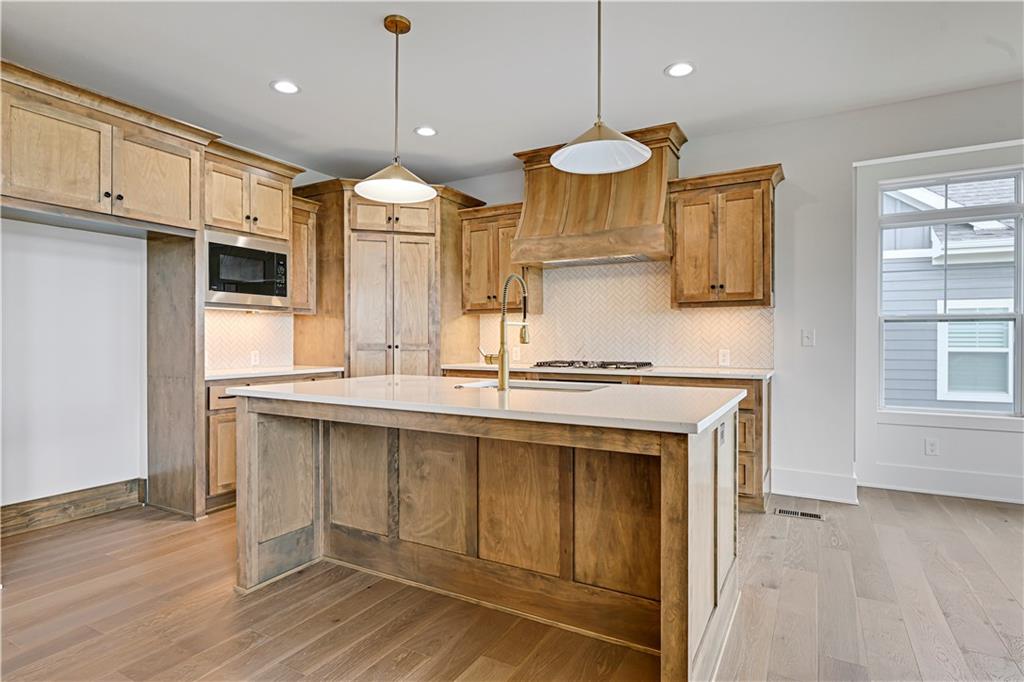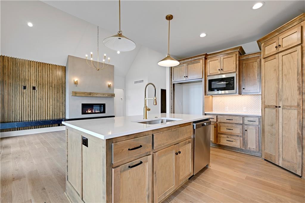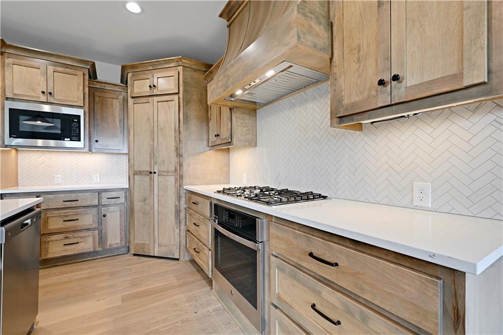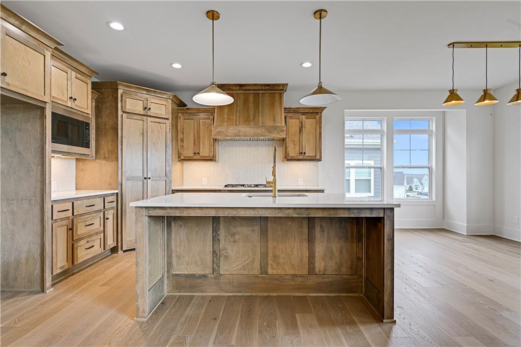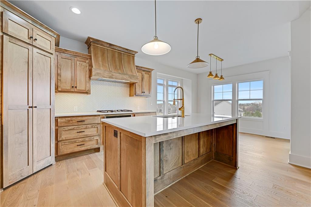 MOVE-IN READY | MAINTENANCE-PROVIDED VILLA IN CHAPEL HILL Welcome to Chapel Hill Villas — where low-maintenance living meets elevated design in one of South Overland Park’s most sought-after communities. This luxury twin-villa showcases the award-winning “Mansfield EX” by GC: James Engle Custom Homes, offering true main-level living with a bright, open layout and upscale finishes throughout. Step inside to soaring ceilings, abundant natural light, and wide-plank hardwood floors that create a warm, inviting feel. The gourmet kitchen is designed to impress with quartz countertops, custom cabinetry, stainless steel appliances, and a seamless flow into the great room—perfect for everyday living and effortless entertaining. The main-level primary suite delivers comfort and convenience with a spa-like bath featuring a zero-entry shower, double vanity, and a spacious walk-in closet. A secondary bedroom or private office on the main floor adds flexibility for guests or work-from-home needs. The finished lower level expands your living space with a large recreation room, third bedroom, and full bath—ideal for hosting or creating a private retreat. Enjoy peaceful mornings or relaxing evenings on the covered patio, all within a maintenance-provided community where lawn care and snow removal are handled for you. Residents also enjoy resort-style amenities including two pools, clubhouse, walking trails, and pickleball courts. Located just minutes from Highway 69, top-rated Spring Hill schools, and premier shopping and dining, this home offers the perfect blend of luxury, convenience, and lock-and-leave lifestyle. Experience the ease and elegance of the “Mansfield EX” — designed for how you live today. Lot 8 Completed