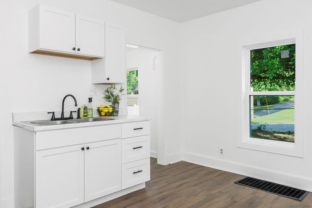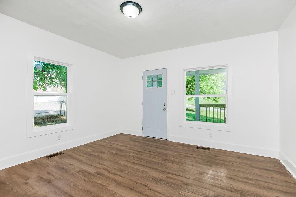 Beautiful Move-In Ready Charming Bungalow! This fully renovated home perfectly blends modern upgrades with timeless character. This home boasts major curb appeal with fresh exterior paint, eaves, fascia, new exterior and interior window trim. The welcoming front porch is complemented by a new front porch balustrade for added durability, and a new French drain system has also been installed for added assurance. Inside, you’ll find a bright and inviting layout with fresh wall, trim, and ceiling paint throughout, along with Brand New Windows throughout for a crisp sleek finish. Stylish luxury vinyl plank flooring (traffic master grade) runs throughout the home, with updated fixtures, and a fresh laundry room with added support. The kitchen shines extra with new white shaker cabinets, fixtures, updated countertops, and many more new features! A new refrigerator water line installed for convenience and freshness. The bathroom has been refreshed with a brand-new vanity, epoxy coat, and sheetrock offering peace of mind and style. Known as “The Gateway to the Trails,” Sugar Creek’s rich history and community charm are home to historic landmarks such as the Lewis & Clark Heritage Trail, Scenic LaBenite Park along the Missouri River, and the Mallinson Vineyard and Hall. Its small-town atmosphere, close proximity to the bustling downtown Kansas City area and sports arenas, plus access to beautiful parks and river views make it a truly special place to call HOME!