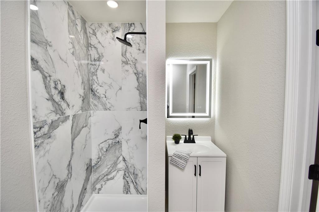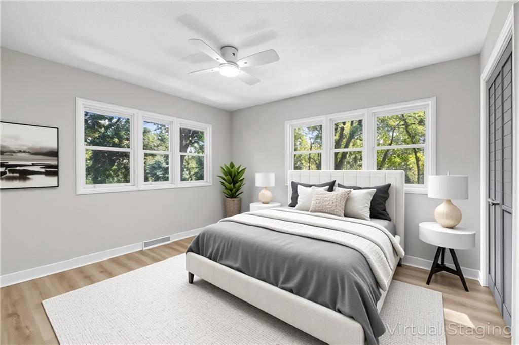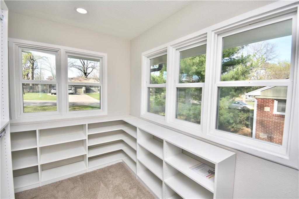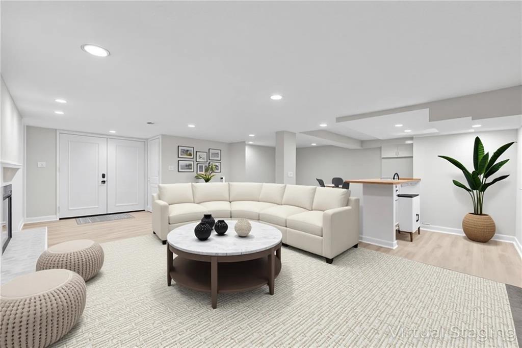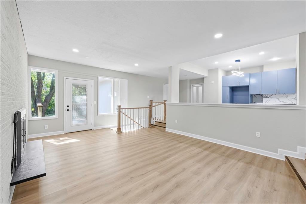 Complete renovated Reverse 1.5 Story offering main level living, spa-like primary suite, and finished walk-out basement on nearly half an acre! If you have viewed this one before, STAY!! Seller took property off market & completed enhancements you will love!! This home also offers main level living with 3 bedrooms and 3 full bathrooms on the MAIN FLOOR—a RARE find. The redesigned primary suite includes a spa-like bathroom, double vanity, LED backlit mirror, walk-in tiled shower, freestanding soaking tub, custom built-ins, and a large walk-in closet. Additionally seller replace LVP flooring on the main level with hybrid wood flooring, and new carpet in bedrooms. The fully remodeled kitchen features new cabinetry, quartz countertops, large island w/cooktop, double oven, pantry, abundance of counter space especially for entertaining! Open concept living room/hearth room with fireplace, abundant natural light, and modern finishes throughout. All new interior doors, trim, hardware, lighting, and ceiling fans. Finished walk-out basement expands living space large rec room, wet bar, second fireplace, additional bedroom, full bathroom, & walk-in laundry room with built-ins. Unique hidden room behind built-in bookcase adds flexible bonus space! Exterior features - covered patio, new deck, nearly ½ acre lot, and partial privacy fence. Major updates: new roof, new garage door, new driveway, fresh interior & exterior paint. This beautiful modern home is Turnkey/ Move-in ready. Prime location w/quick highway access, aprox 15 minutes to downtown, 30 mins to KCI Airport, 20 minutes to Chiefs/Royals Stadium. Close to OP shopping & dining. Shawnee Mission School District. HIGHLIGHTS INCLUDE- Complete Interior Renovation- Turnkey Ready- Reverse 1.5 Story- Main Level w/3 Bedrooms & 3 Full Bathrooms- Primary En-Suite- Finished Walk-Out Basement, Wet Bar- New Garage Door, Driveway, Partial Fence- New Roof- Great Location-Easy Commute!
