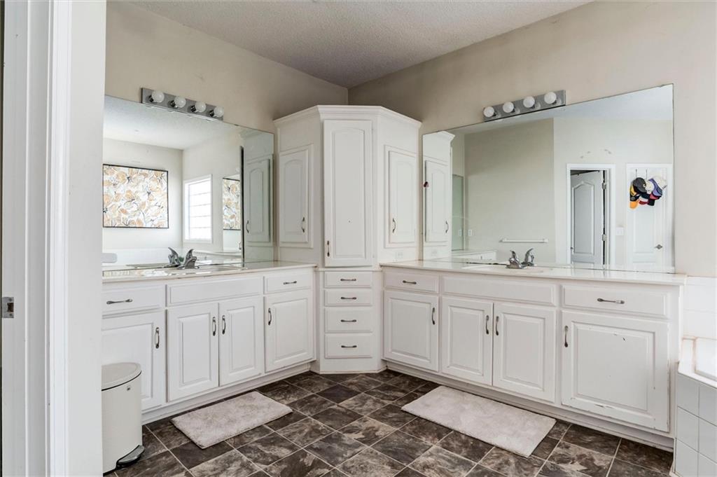 Gorgeous Move-in Ready home that boasts 5 Bedrooms, 4 1/2 baths, a fabulous, finished basement w/office and full bath, upstairs laundry, a primary Bedroom with sitting room, plus 5th bedroom/office with full bathroom on main level. Well maintained. Newly remodeled kitchen with granite, tile backsplash, and stainless appliances. Large breakfast area bay opens to great room, plus a formal dining room. Lots of living space in this spacious home with two separate living areas that include a large living room with beautiful fireplace, and a good sized lower-level family room with a separate room that could be used for an office. Lots of storage area in this beautiful home. Large, fenced back yard ready for family fun in a Cul-de-sac lot. The subdivision offers walking trails, lake, pool, clubhouse and playground area. Located close to schools, shopping, and restaurants. Great opportunity to own this beautiful spacious family home at a great price! Hurry won't last long!