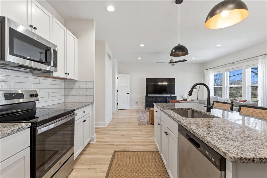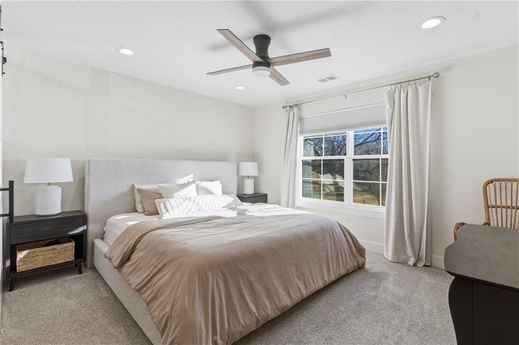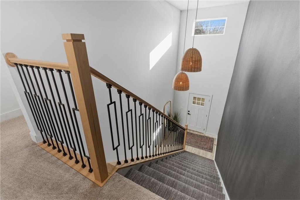 Better than new construction — this stunning 3-year-old townhome offers all the benefits of new build without the wait. A dramatic two-story entry welcomes you with designer iron spindle staircase and curated light fixtures. The open main floor flows seamlessly from the chef's kitchen to dining and living, perfect for entertaining. The kitchen features a large island, walk-in pantry, stainless steel appliances, designer backsplash, and updated hardware. Commercial-grade luxury vinyl plank flooring, matte black hardware, and granite countertops throughout give this home a cohesive, high-end feel. The primary suite is a true retreat with floor-to-ceiling tiled shower, double vanities, under-mount sinks, and an oversized walk-in closet connected directly to the laundry room. The large unfinished basement offers endless storage and is ready for your future vision. Outside, enjoy a brand new deck, a spacious treed backyard, and a park with playground and picnic area right across the street. Easy access to I-35 and I-635 makes for a smooth commute anywhere in the metro.