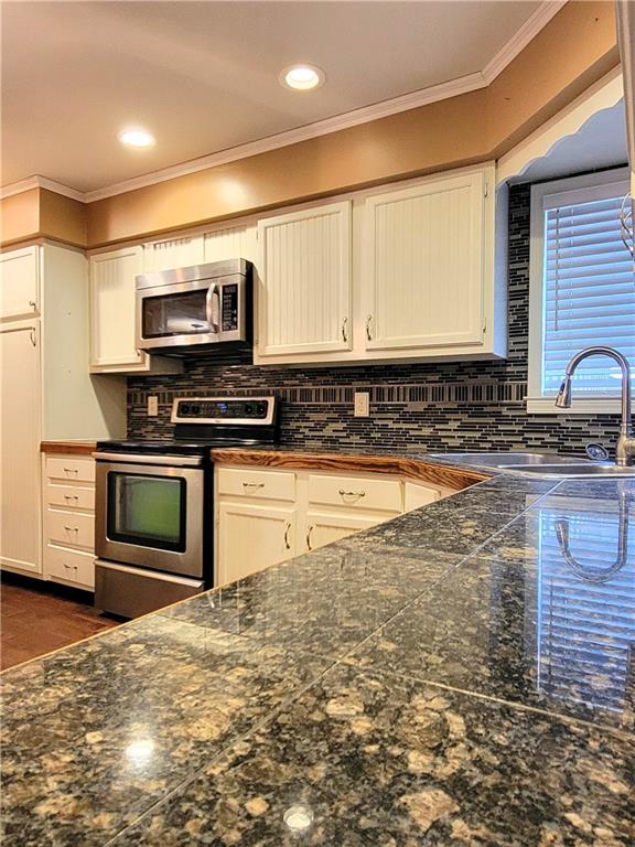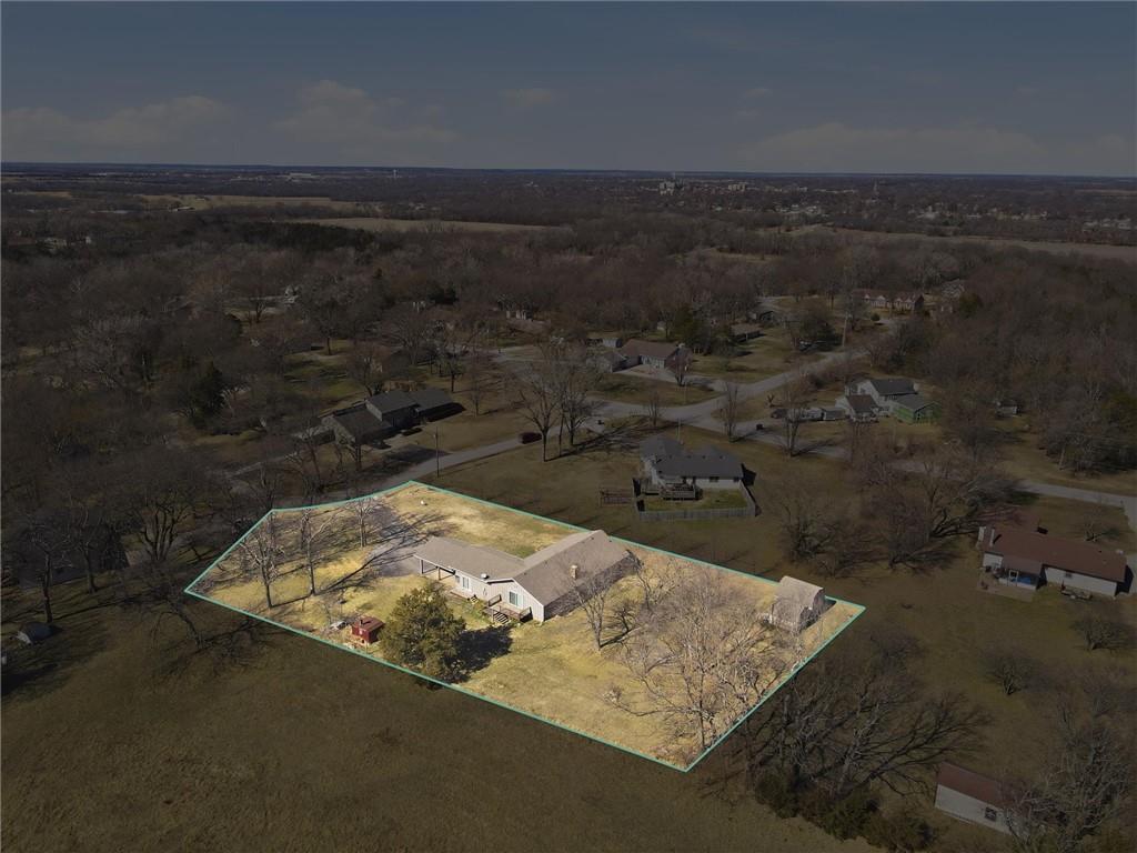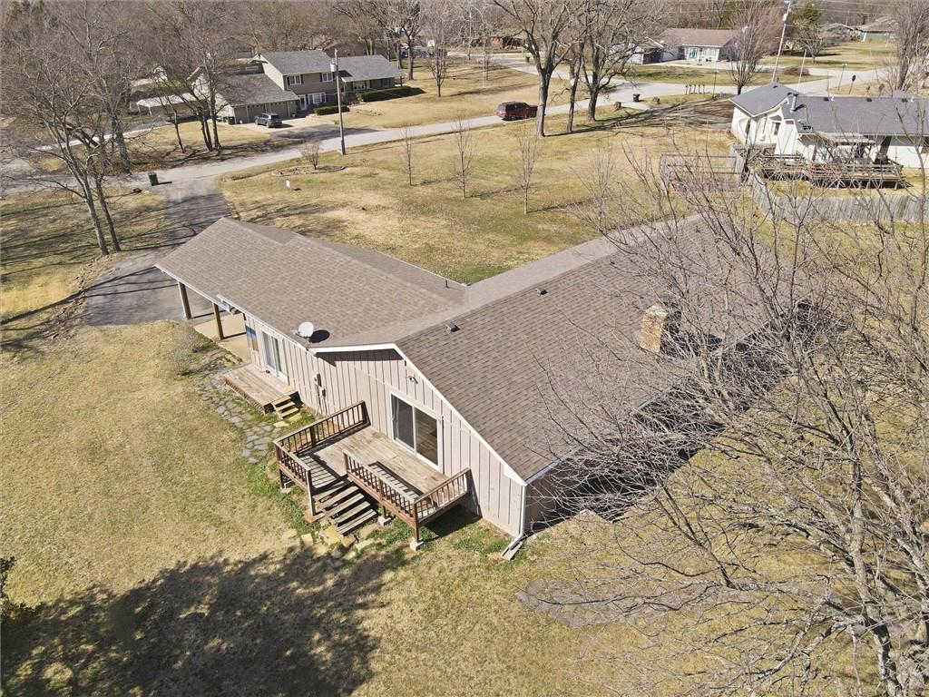 Well maintained home located in desirable neighborhood just outside the city limits. This three bedroom home has a lot to offer you! The fireplace brings coziness to the living room. The kitchen is large and provides space for sitting at the bar and it open to the dining room. The garage was converted into a rec room - this would be a great space for an office, homeschooling, crafting or games. Sit outside on the deck or rock patio area and watch for birds and wildlife. Two storage buildings stay. New Lennox HVAC system installed in January 2025. Roof is approximately 2 years old. Gutters put on in 2023.