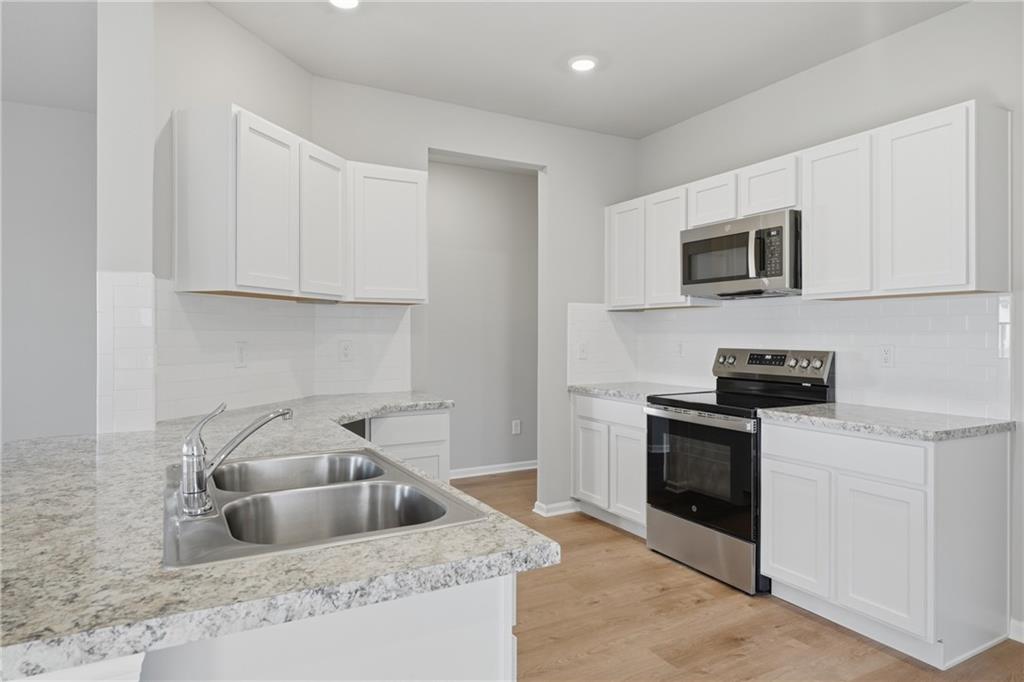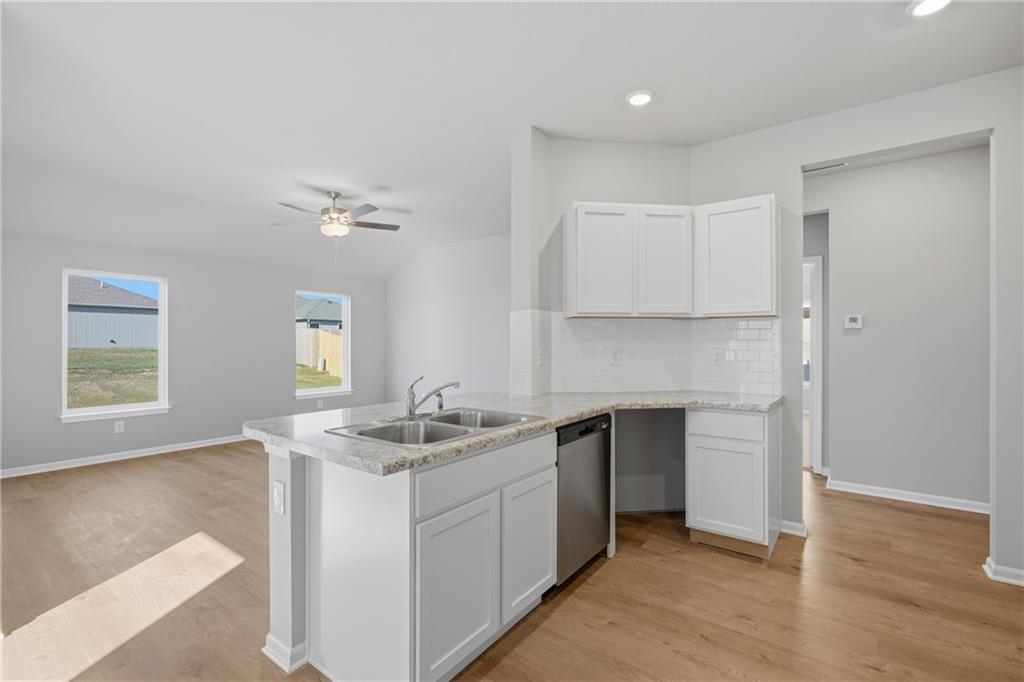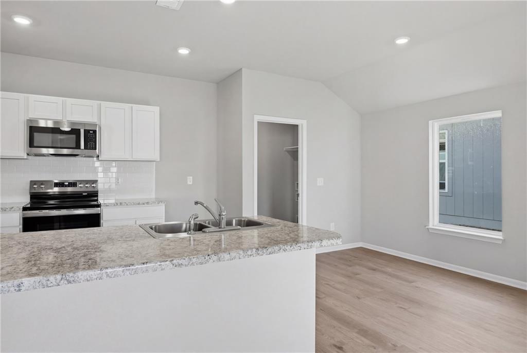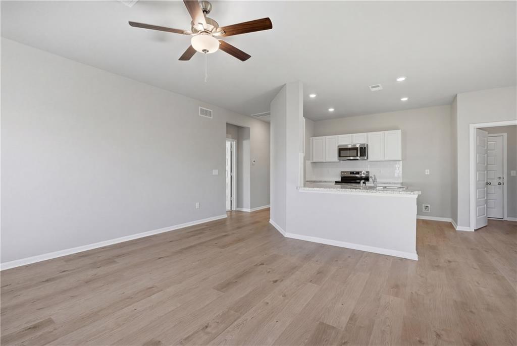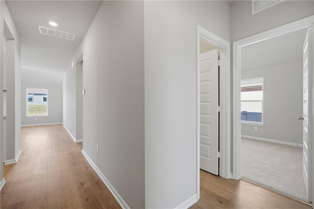 This new single-story home blends style with functionality. Two secondary bedrooms share a bathroom in the hall at the front of the home, while the owner’s suite is tucked into the back corner with a private bathroom. Down the hall is the free-flowing main living area, which includes a kitchen with a center island, a welcoming family room and a dining room with a covered rear patio. A convenient two-car garage completes the home. Photos and tour may be of a previously sold home and are for illustrative purposes only. Colors and finishes may vary. See New Home Consultant for Details