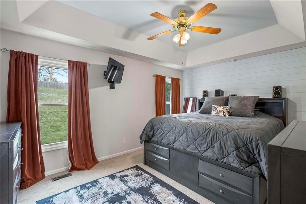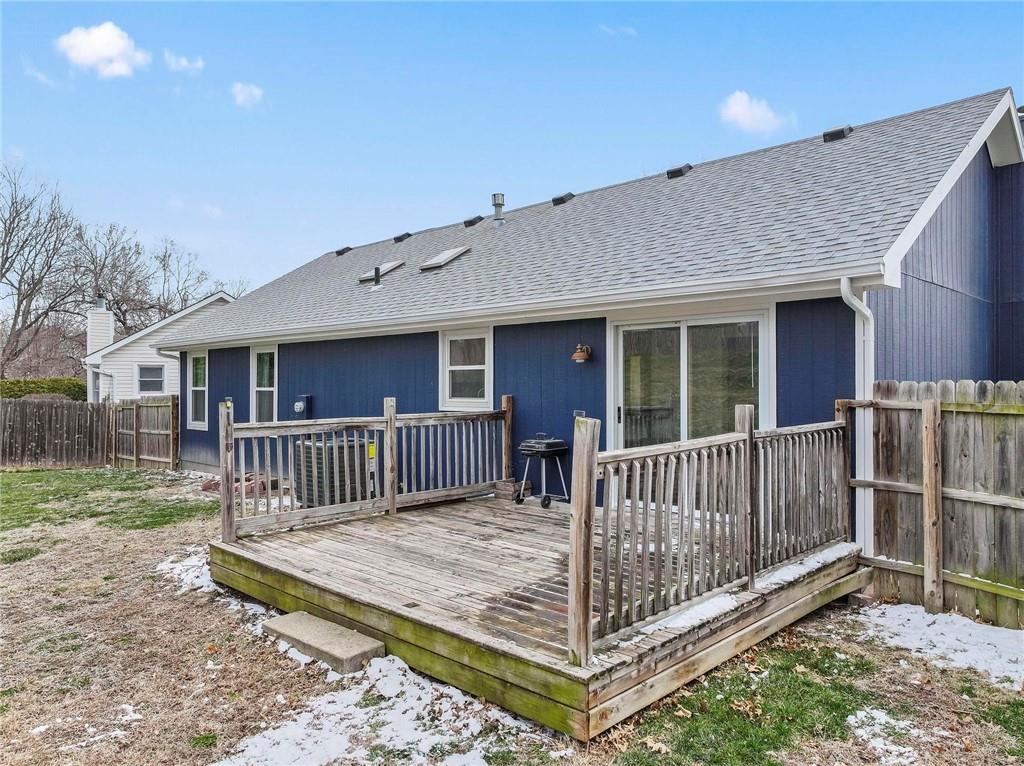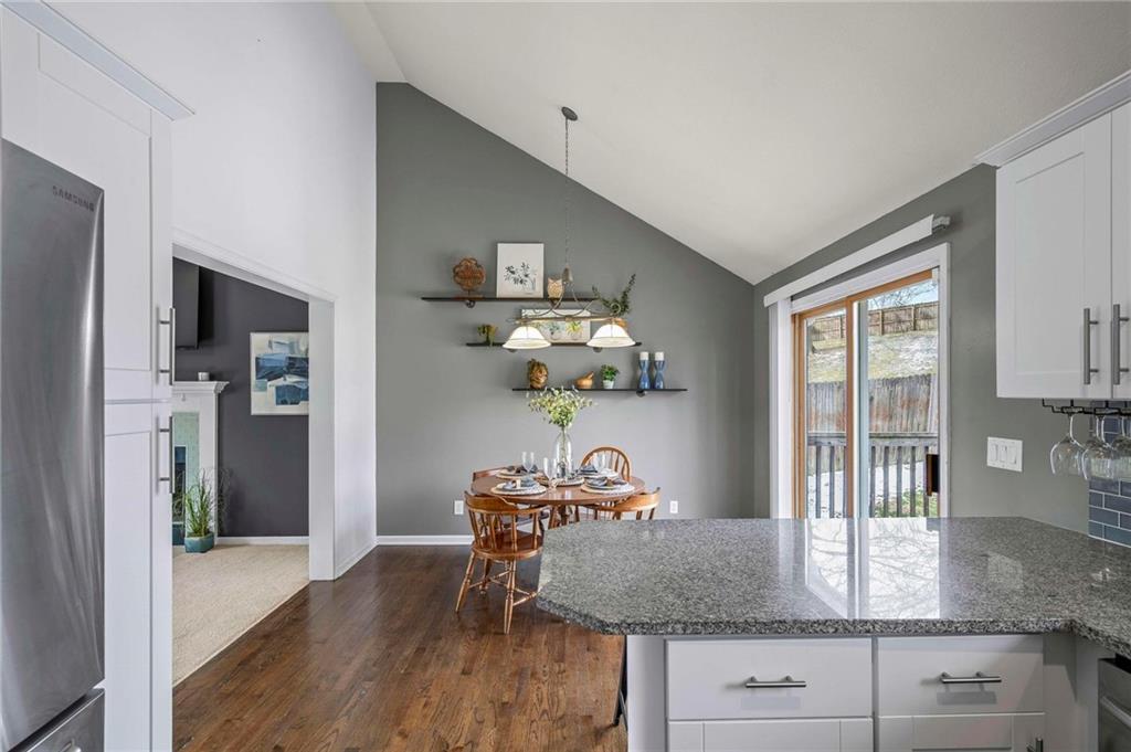 This home has great curb appeal. From the moment you drive up you'll wonder if the inside matches the outside in charm and character. Good news for you, it does! The large living room with vaulted ceiling has plenty of room for 2 couches or a sectional, perfect to snuggle in for movie night in front of the fireplace. You'll love the updated kitchen with white cabinets, granite counters and stylish backsplash! Stainless steel appliances complete the look. The vaulted ceiling in the kitchen and dining room keeps it feeling open and airy. You'll love the primary bedroom that's large enough for big furniture and ensuite bath with jetted tub. Your main-floor laundry keeps you from lugging those clothes baskets up & down the stairs. The finished basement is spacious and could be split if you need an additional bedroom or office space and has plenty of room for TV, workout or play. A half bath is tucked into the corner for convenience. The large yard is fenced and has room to roam. NEW ROOF in 2025!! Seller is providing an Old Republic Home Warranty. Don't delay, schedule your showing today.