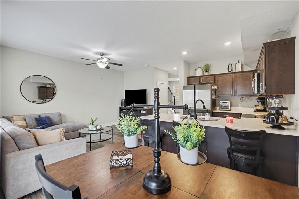 Well-appointed single unit within a four-plex, featuring excellent curb appeal. The inviting entry showcases an open foyer with iron spindle staircase accented by designer carpet. Luxury vinyl plank flooring spans the entire first floor. The thoughtfully designed kitchen offers stainless steel appliances and quartz countertops, seamlessly flowing into the breakfast nook and spacious great room—ideal for both everyday living and entertaining. The oversized owner’s suite includes a walk-in closet, while the conveniently located upstairs laundry serves all bedrooms. Secondary bedrooms feature generous closet space, complemented by a large upstairs bathroom. The unit also includes a full, unfinished basement, providing abundant storage or future living space potential.