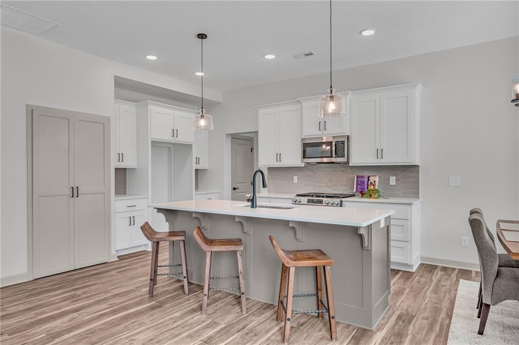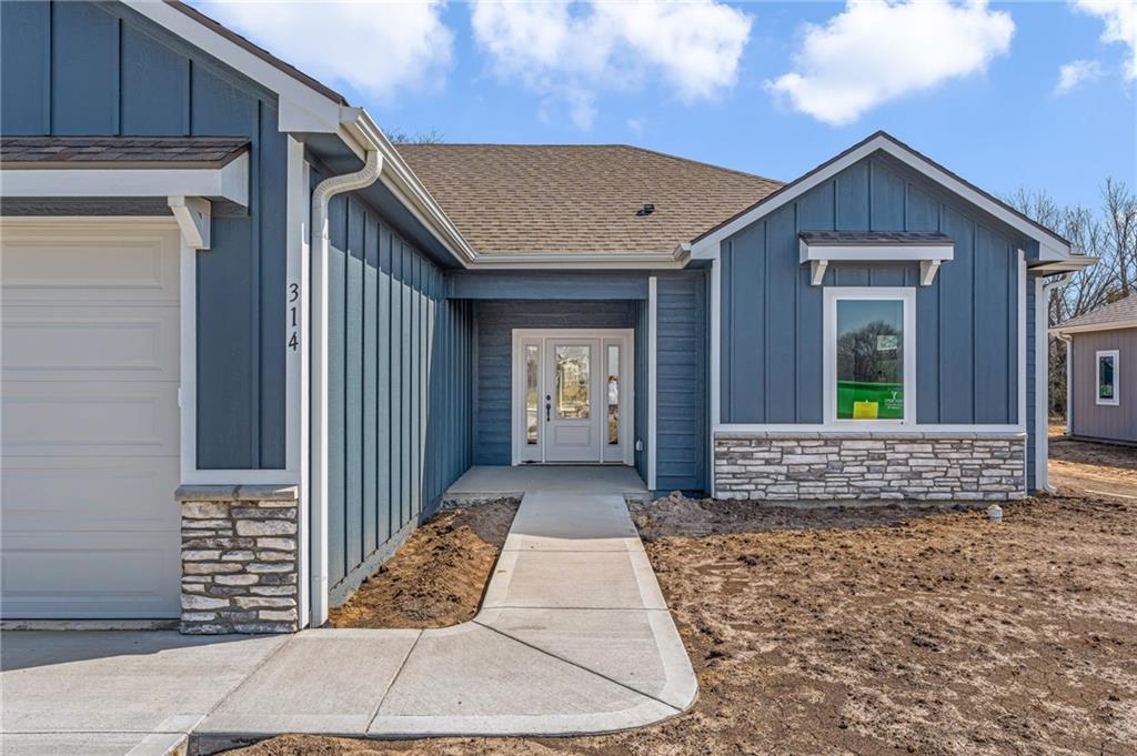 Address is NOT mapped, see directions!!! The Bridgeport floorplan built by Drippé Homes. Open concept daylight basement with tons of natural light! Kitchen furnished with stainless appliances, gas range, microwave, quartz countertops, large island with oversized sink and spacious walk in pantry. Primary opposite other bedrooms. Ensuite features double vanity, tiled walk-in shower, private water closet, MASSIVE closet with window bench and pass through to laundry. Mudroom off garage with boot bench. Cozy up to the fireplace in the living room or enjoy the sunrise from the covered back patio. Home backs to tree-line providing ultimate privacy. Three car garage provides plenty of storage. Directions: From US-56 E and E High Street, Left/North on E High Street, E High Street turns into Rockers Drive, home is on the right on the N side of US-56 E