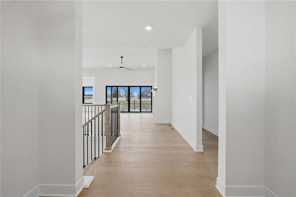 Exceptional Hickory C plan by Beggs Construction on a scenic 5.05-acre walkout lot backing to a pond, offering privacy, space, and peaceful views. This thoughtfully designed ranch features an open main level with a spacious great room flowing into the kitchen and dining area—perfect for entertaining or everyday living. The kitchen includes a large island, pantry, and access to a covered deck overlooking the pond. The private primary suite is tucked away on the main level and includes a walk-in closet and en-suite bath. A second main-level bedroom and full bath provide flexibility for guests or a home office. Additional conveniences include a mudroom, laundry, and a spacious 3-car garage. The finished walkout lower level expands the living space with a large recreation room, additional bedrooms, full bath, and optional shop/storage space, with direct access to the patio and expansive acreage—ideal for entertaining, hobbies, or simply enjoying the setting. Timeless curb appeal, quality construction, and a rare acreage lot make this home a standout opportunity. See attached floorplan for room measurements.