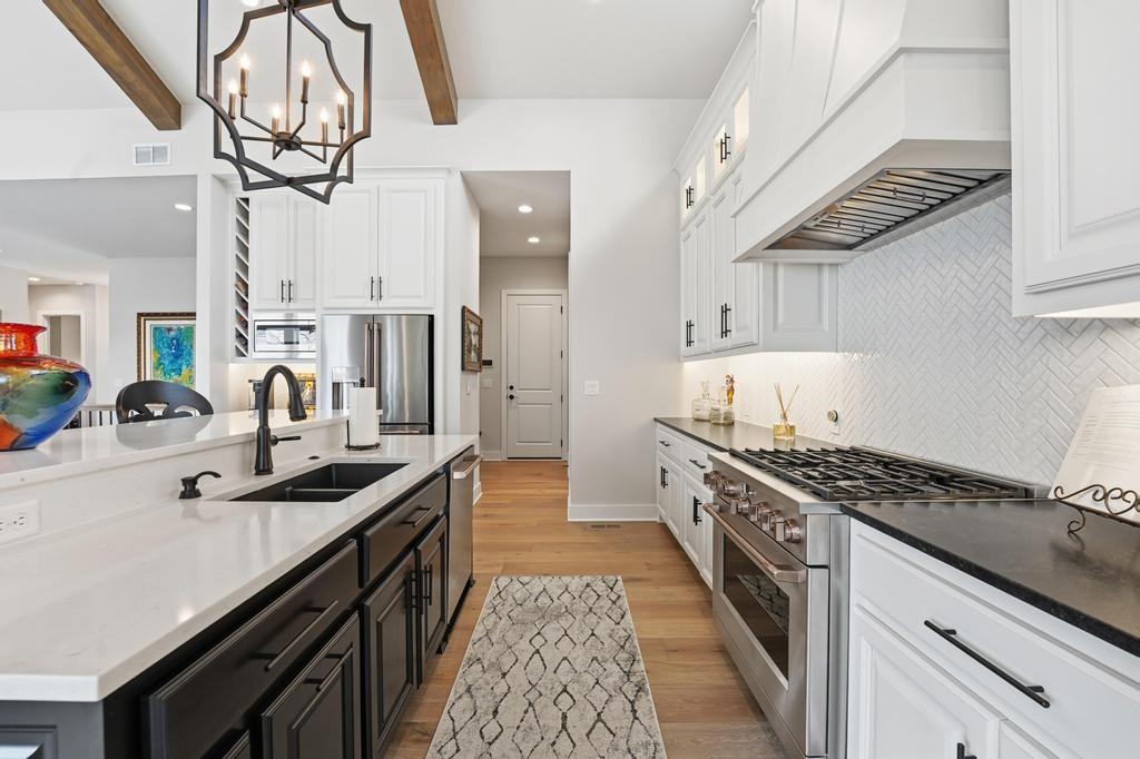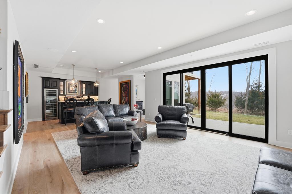 Almost new and lightly lived in, this custom-built home offers elevated design, thoughtful upgrades, and effortless living in the resort-style community of Cedar Creek. Perfectly positioned backing to Hole #5 tee box of the award-winning private Shadow Glen Golf Course, the setting offers both beauty and privacy. Inside, the light-filled, open floor plan showcases modern wide-plank luxury wood flooring, LED lighting throughout, & motorized shades. As you enter the home, your eyes are immediately drawn to the large wall of windows overlooking the golf course in the great room with vaulted ceiling, stunning fireplace and built-ins. The gourmet kitchen features a large quartz island, walk-in pantry, and GE Café appliances with striking copper hardware including a gas range, refrigerator, microwave, beverage fridge, and dishwasher. The laundry room offers a convenient sink and built-ins. Designed for comfort, you can relax on the screened-in porch with fireplace and TV. The spacious primary suite has wood floors and lighted tray ceiling. The spa-inspired bath has a large tiled shower, soaking tub, under-cabinet lighting, and a large walk-in closet with built-ins & dedicated makeup/vanity area. A second main level bedroom also features luxury wood flooring. The stunning lower level, complete with modern fireplace and a full wet bar featuring honed quartz counters, wine fridge, microwave, dishwasher, sink, and ice maker is perfect for gatherings with friends and family. Two additional bedrooms in the lower level with a shared bath are perfect for guests. A huge finished storage closet with custom built-ins provides exceptional organization. Additional upgrades include a recirculating water system, two 50-gallon water heaters, electric vehicle charger hookup, epoxy garage floor, sealed driveway, buried drains, and striking stucco and stone exterior. Maintenance-provided services include lawn care and snow removal. This is refined, low-maintenance luxury living at its best.